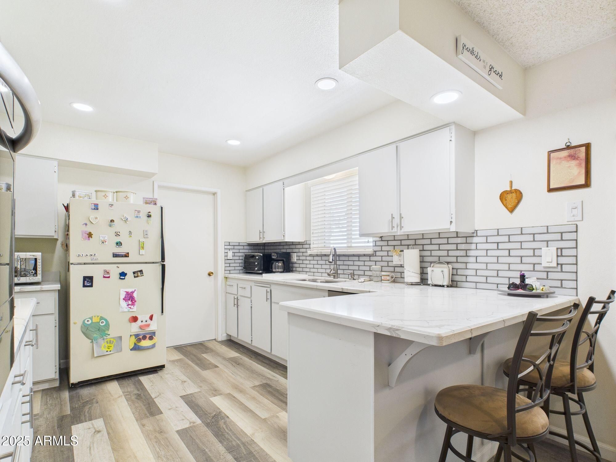 Step into Sun City living! Whether you're in search of a seasonal getaway or a forever home, this beautifully refreshed 2-bedroom, 1.75-bathroom property has everything you need. The remodeled kitchen shines with quartz countertops, brand-new Frigidaire appliances, a versatile 3-in-1 oven (standard, convection, and air fryer settings), and an induction cooktop designed to make entertaining simple. Modern updates include new flooring and baseboards throughout, creating a clean and cohesive flow. Plantation shutters dress nearly every window, while the Arizona room, kitchen, and primary bathroom showcase rich wood slat blinds. The Arizona room also features new 80% solar screens, adding comfort year-round. With golf courses, recreation centers, pools, and endless amenities just minutes away, this Sun City home combines style, low-maintenance living, and the vibrant active adult lifestyle Arizona is known for.