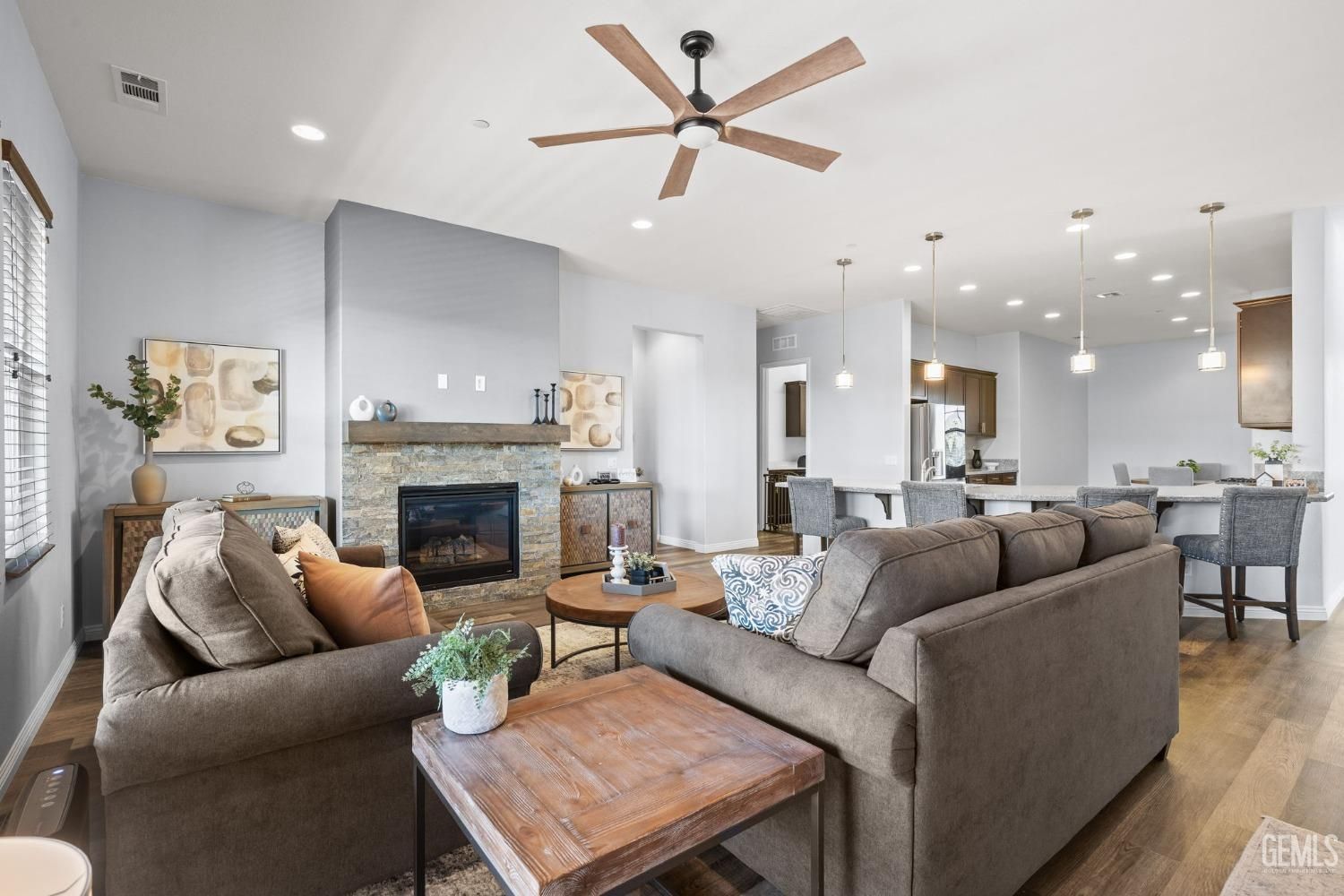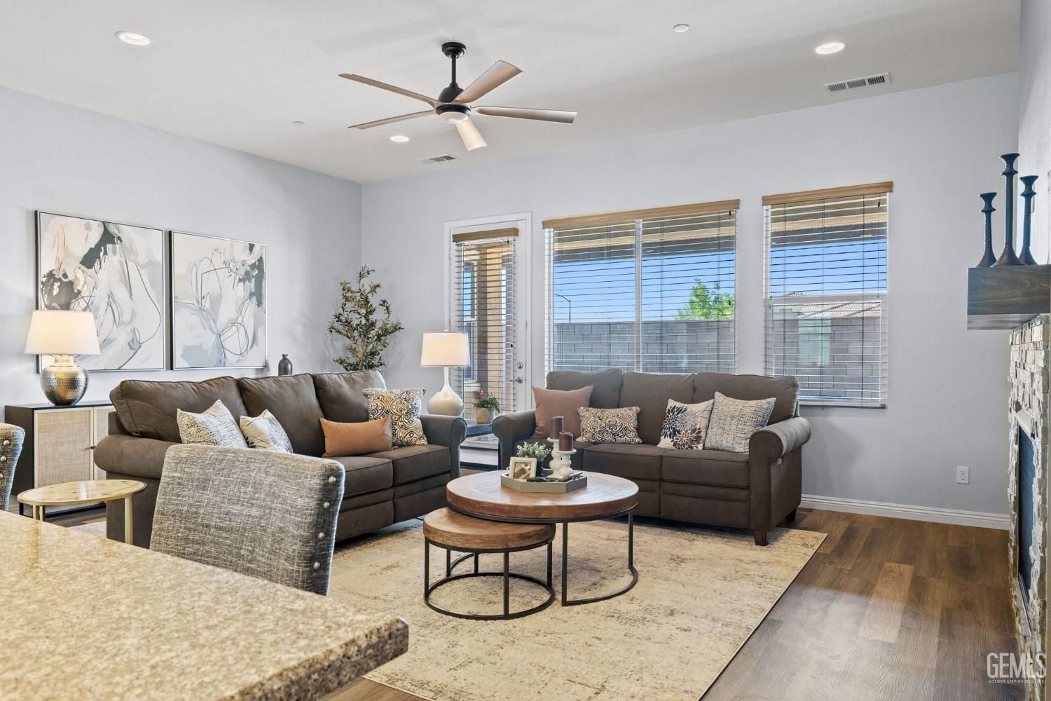 This beautiful home with PAID solar is located in the Four Seasons 55+ double gated community. This home has an open concept with luxury flooring and a custom fireplace. Interior is decorated with modern touches. It's also located on a corner lot. The large kitchen is a chef's delight with SS appliances and granite counters and an eat in area. This home has 3 full bedrooms and 3 full baths. It also has a paid water softner. Community has too many amenities list. Make this home a must see!!