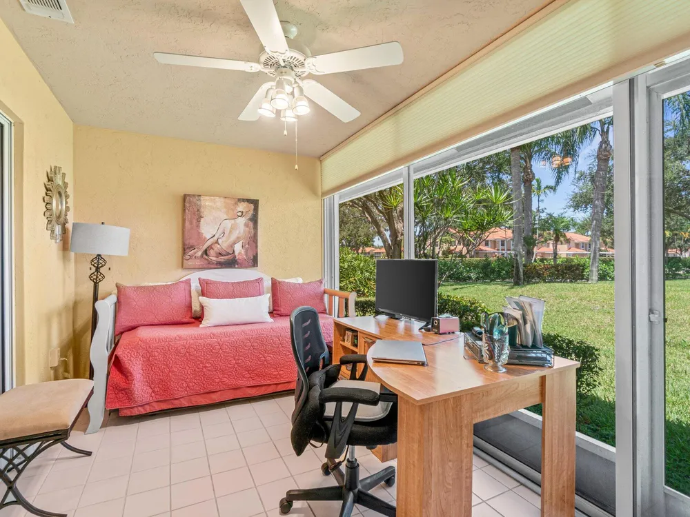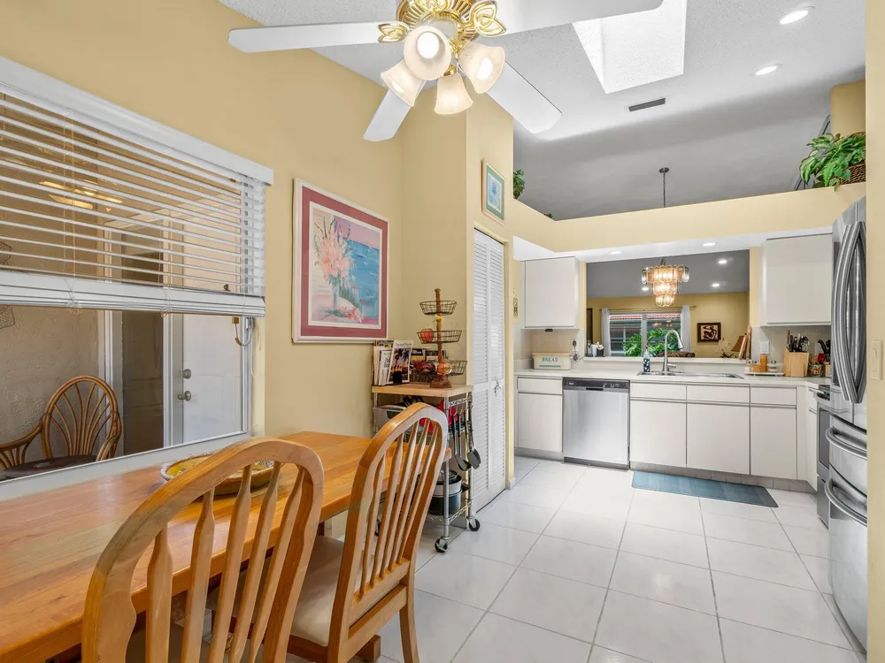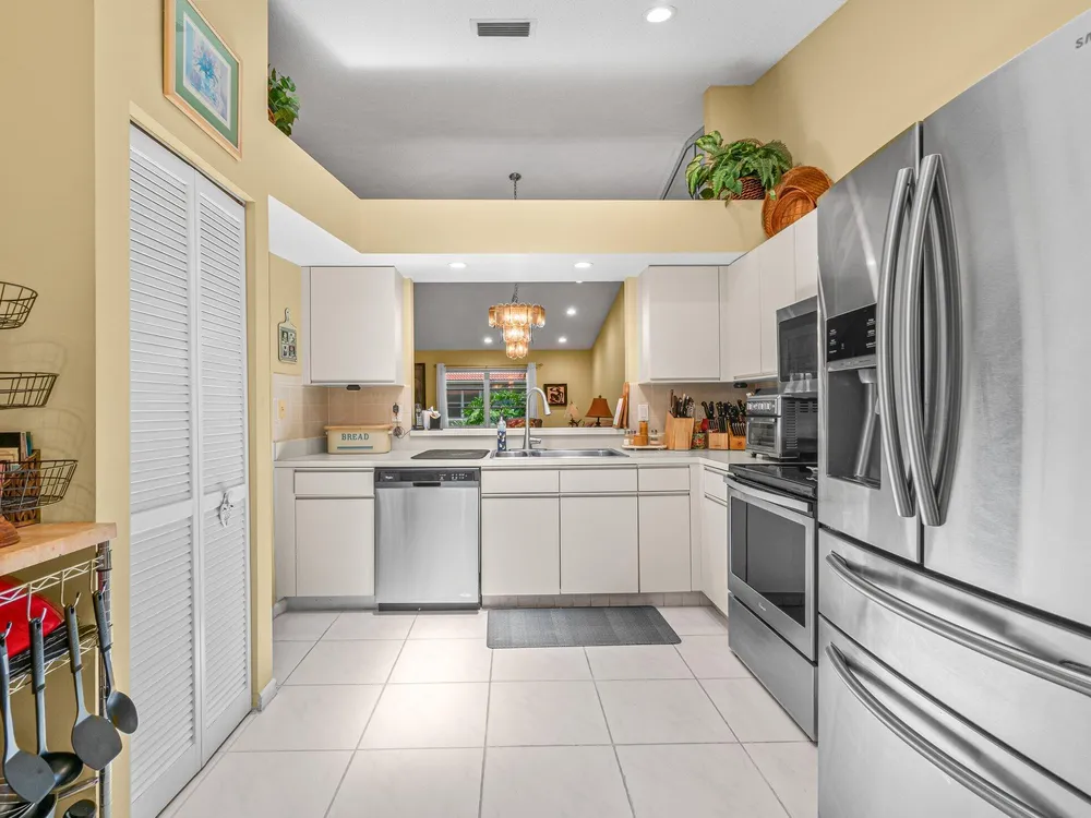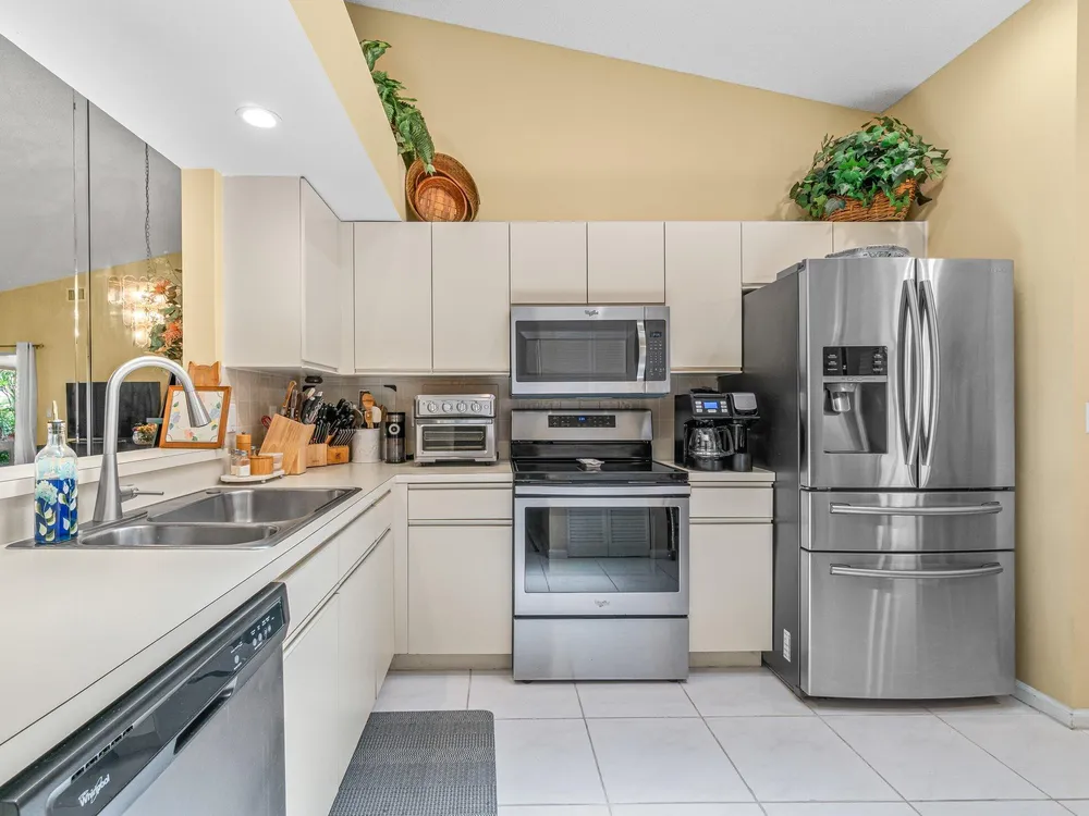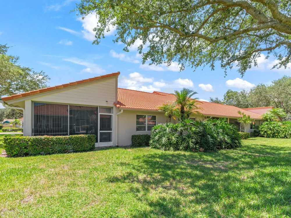 LOVELY 2 BR 2 BA 1 CAR GARAGE VILLA IN A 55+ COMMUNITY. WALKING DISTANCE TO A SATELLITE POOL. EAT-IN KITCHEN HAS STAINLESS APPLIANCES & PULL OUTS IN THE PANTRY. VAULTED CEILINGS IN LIVING & DINING AREAS. LIVING ROOM & PRIMARY BEDROOM OPEN TO A GLASS & SCREEN ENCLOSED PORCH OVERLOOKING A SERENE GARDEN SETTING. 16'' TILE IN THE LIVING AREA, VINYL PLANK IN THE PRIMARY BEDROOM, & BAMBOO IN THE GUEST ROOM. NEUTRAL DECOR. A/C & WASHER ARE 3 YEARS OLD. ROOF WAS REPLACED IN 2008. CLUBHOUSE RENOVATIONS TO BE DONE BY DECEMBER, FEATURING A THEATER, RESTAURANT, FITNESS, POOLS, TENNIS, PICKLEBALL, & CARD ROOMS. CONDO FEE INCLUDES WATER, CABLE, INTERNET, & ROOF. PETS MUST BE 35 LBS.OR LESS. CLOSE TO RESTAURANTS, SHOPPING, & THE TURNPIKE. QUICK CLOSE POSSIBLE.