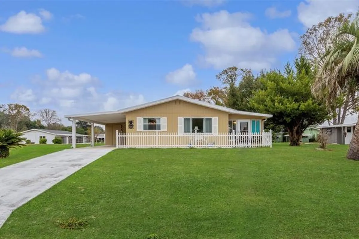 Claim your slice of relaxed Florida living today with this attractively priced 2-bedroom, 2-bath home complete with fresh exterior paint and a 2023 metal roof for lasting peace of mind. Set within the active 55+ community of Pine Run Estates, this charming residence offers a light-filled interior with a neutral color palette, wood flooring in the main living areas, and glass sliders opening to an enclosed Florida room providing perfect flex space for gatherings or relaxation. The dedicated dining area opens to the compact, yet well-equipped kitchen, thoughtfully designed with tile flooring and white cabinetry with updated hardware. The owner’s suite features a spacious walk-in closet and private bath offering a striking tile-lined step-in shower. Enjoy a separate guest bedroom and full bath, providing comfort and privacy for visitors. Residents of this community enjoy exceptional amenities, including two clubhouses, a sparkling pool, tennis courts, a relaxing hot tub, and a variety of social activities. Located just minutes from Triple Crown Plaza and Veterans' Park, this home offers convenient access to a wide range of shopping, medical services, and dining options. Move-in ready and budget-friendly, this home combines comfort, convenience, and an active lifestyle all at a value you’ll appreciate.