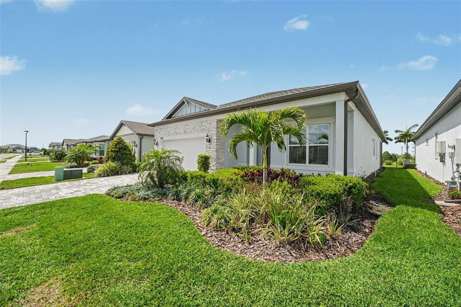 One or more photo(s) has been virtually staged. NO FLOOD ZONE! Skip the 8-month wait for new construction and step into this highly upgraded, move-in-ready Mainstay model in the premier 55+ community of Del Webb BayView. Perfectly positioned on a quiet cul-de-sac with NO REAR NEIGHBORS, this home offers a rare level of privacy with serene views of nature and ideally situated to capture famous Florida sunset views. The open-concept 1,948 sq. ft. interior is loaded with premium upgrades, including quartz countertops, sleek stainless steel appliances, and a seamless transition to a screened-in lanai—perfect for peaceful evenings. Living here is high and dry in Flood Zone X, providing ultimate financial peace of mind with no flood insurance required. Your low monthly HOA offers a true maintenance-free lifestyle, covering high-speed internet, premium cable, and full lawn maintenance. Just a short golf cart ride away, you’ll find the 22,500 sq. ft. Driftwood Clubhouse, featuring the Sailfish Bar & Grille, a resort-style pool, pickleball, and a full-time lifestyle director. Beyond the gates, you are centrally located in the "Golden Triangle," just 30 minutes from the vibrant downtowns of Tampa and St. Pete, and only 25-30 minutes from the world-class white sands of Anna Maria Island, Holmes Beach, and Bradenton Beach. With the new Creekside Commons shopping and dining just minutes away, this home offers the perfect blend of luxury, seclusion, and coastal convenience!