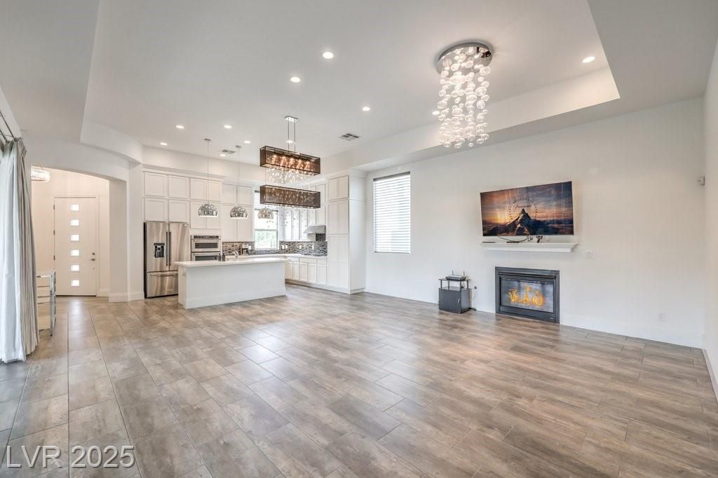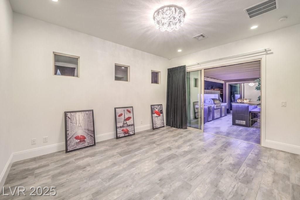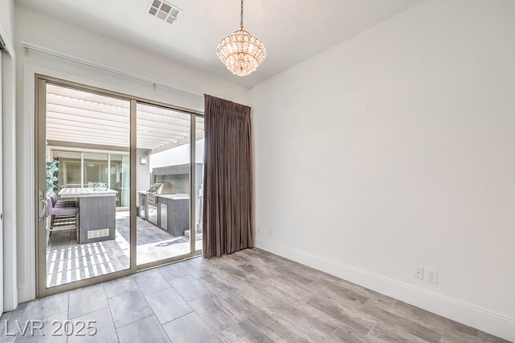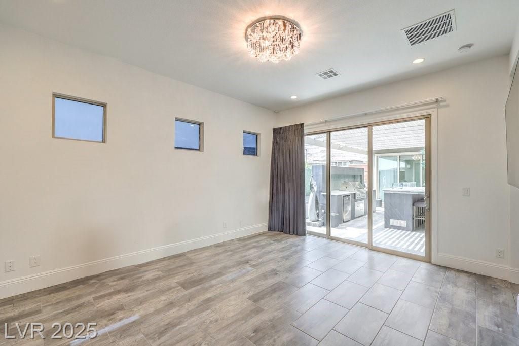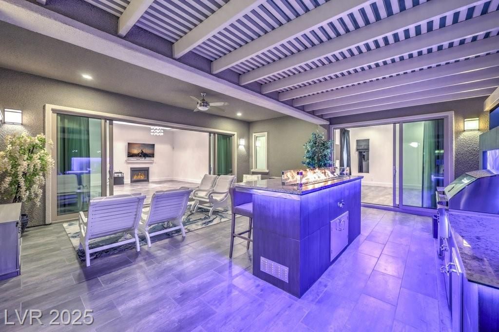 SPECTACULAR home in renowned, GUARD-GATED REGENCY nestled in S SUMMERLIN. Single-story, CORNER LOT home is HIGHLY UPGRADED both inside & out! OPEN-CONCEPT living space that extends thru WIDE sliding pocket doors to your amazing OUTDOOR LIVING SPACE both covered & uncovered featuring a bar, built-in outdoor kitchen, lounging space, outdoor tv, fountains, ambient lighting, & much more! Yard space is just like the builder model!! GREAT ENTERTAINING HOME! Stacked cabinets to the ceiling in the kitchen w/ upgraded stainless appliances, island, pendant lighting, built-in oven & microwave, & is open to GREAT ROOM w/ a fireplace! Upgraded lighting throughout! Office nook & laundry room w/ sink & cabinets. Glass sliders ADDED in both bedrooms for access to backyard. Primary bathroom w/ walk-in shower, separate tub, & double sinks. OH MY CLOSET....Primary has TWO SEPARATE WALK-IN CLOSETS w/ amazing CUSTOMORGANIZERS! Truly PRISTINE home, you can almost eat off the garage floor! MOVE-IN READY!