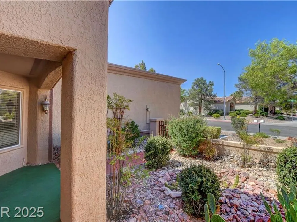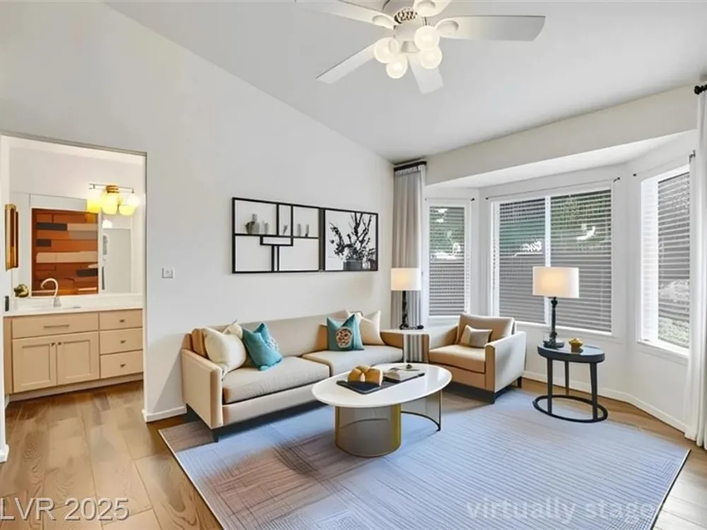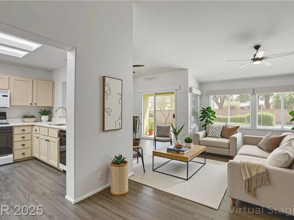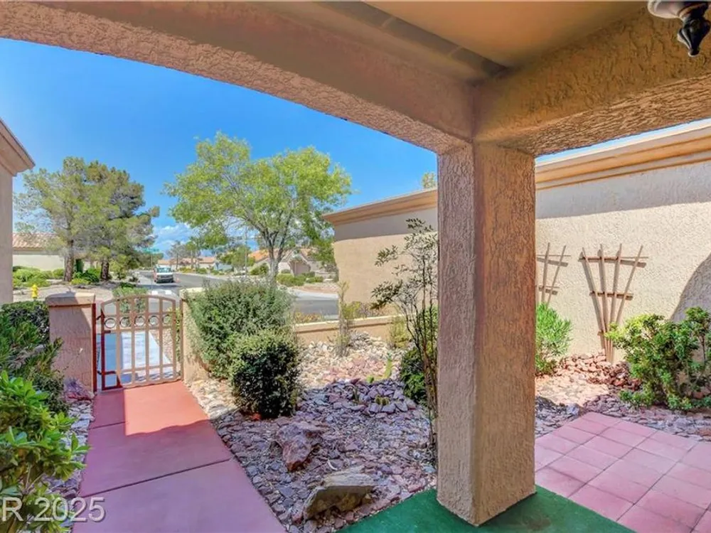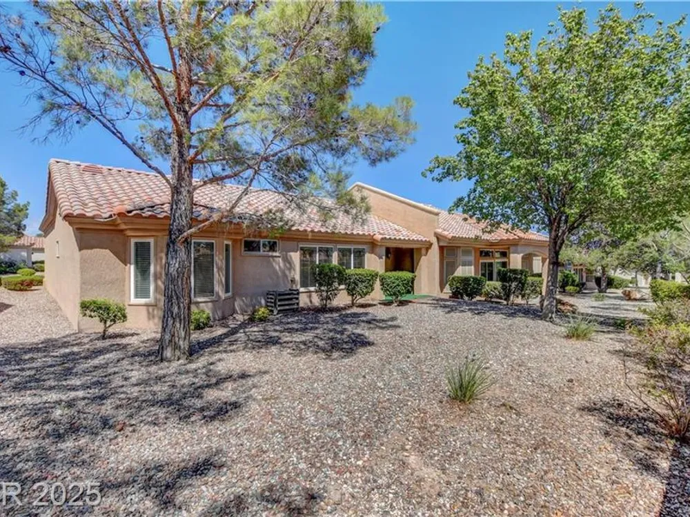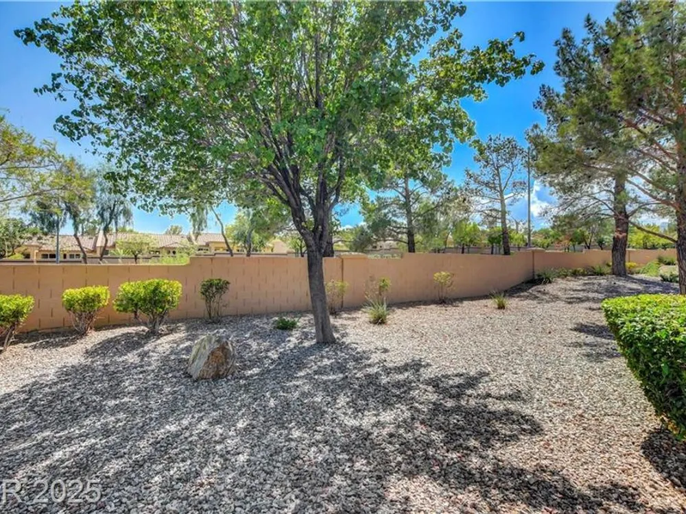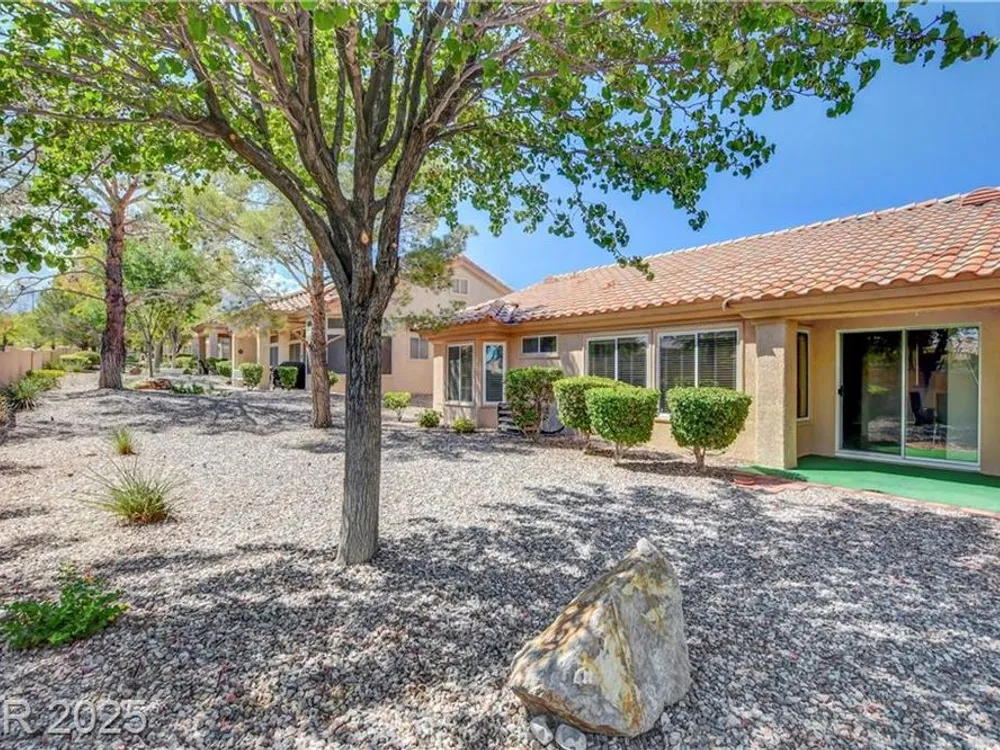 This beautiful single-story townhome, nestled in the heart of the vibrant 55+ Sun City Summerlin community, is one of Las Vegas's premier active adult destinations. The home boasts 2 bedrooms, 2 bathrooms, 2-car garage with epoxy flooring, and storage cabinets. The dining area opens to a covered patio overlooking a meticulously landscaped backyard with mature trees. Sun City Summerlin offers an unparalleled lifestyle. Residents enjoy easy access to 3 golf courses, 4 clubhouses, state-of-the-art fitness centers, indoor & outdoor pools, tennis and pickleball courts, social clubs, a theater, ballroom, and a library. The home is close to premier shopping, dining, entertainment, medical facilities, parks, walking trails, freeways, and Downtown Summerlin. Qualified buyers can benefit from an assumable VA loan with a low interest rate of 2.625%. This move-in-ready home truly has it all for its next owner who's looking for comfort, convenience, location, value, and the active adult lifestyle.