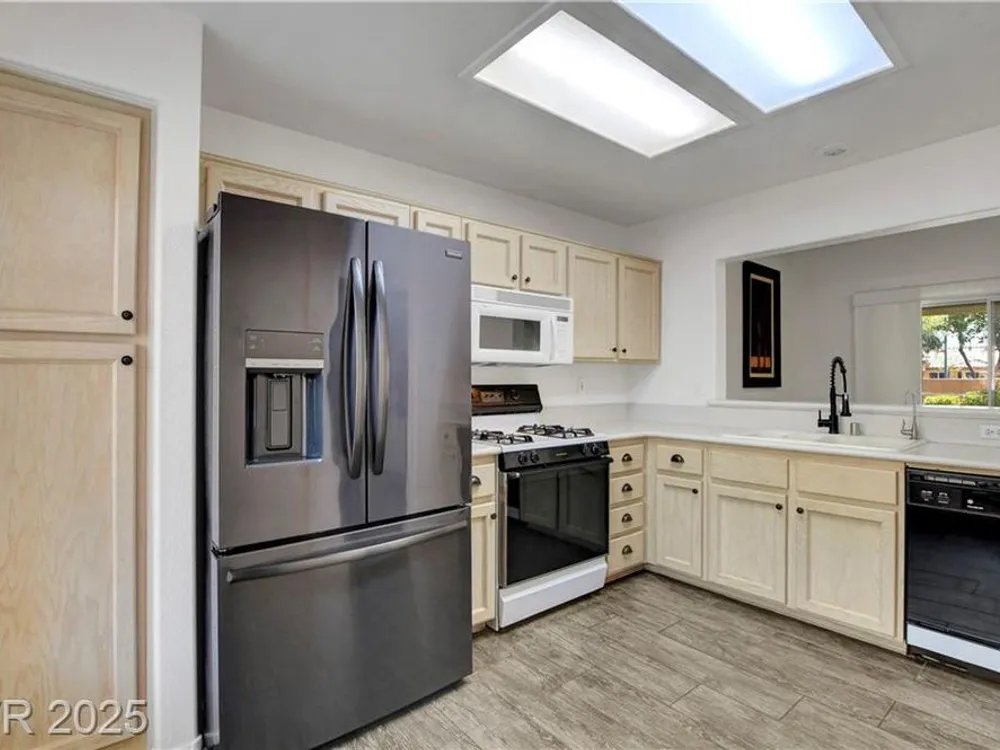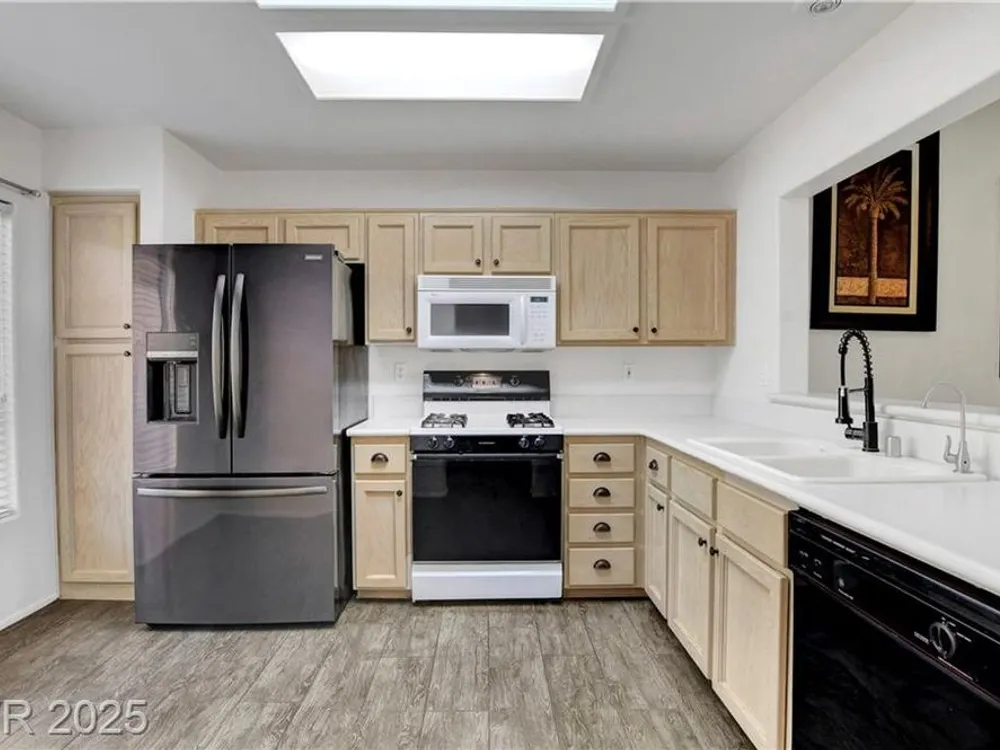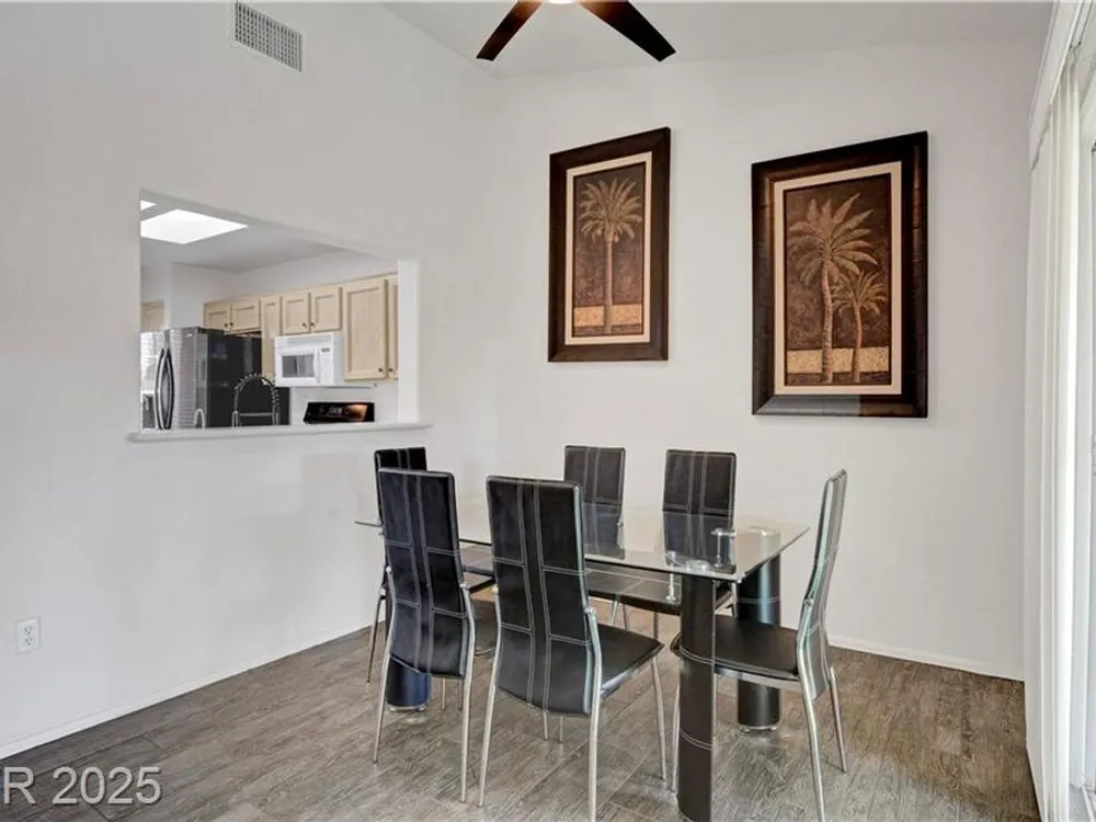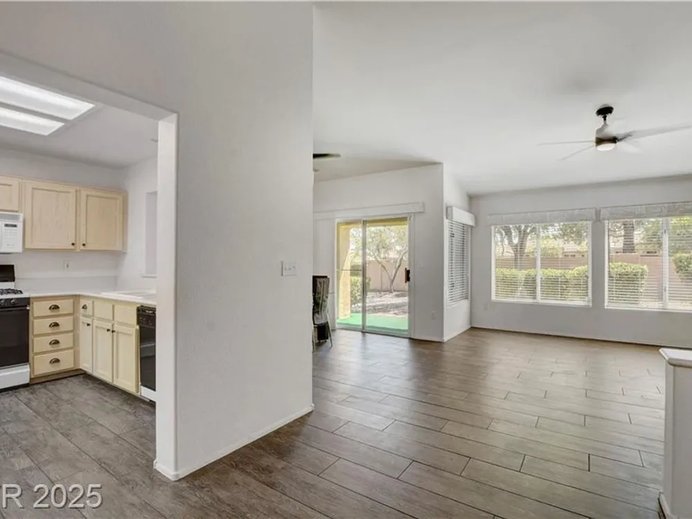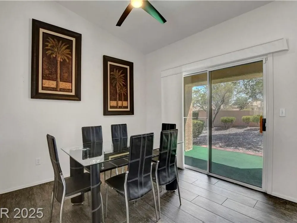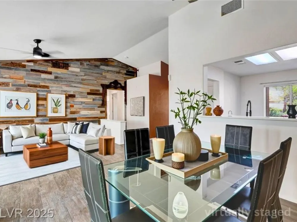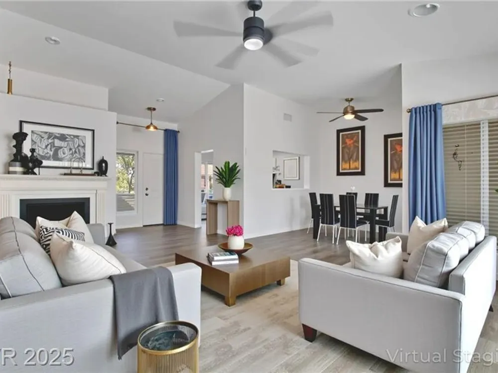 This beautiful single-story townhome, nestled in the heart of the vibrant 55+ Sun City Summerlin community, is one of Las Vegas's premier active adult destinations. The home boasts 2 bedrooms, 2 bathrooms, 2-car garage with epoxy flooring, and storage cabinets. The dining area opens to a covered patio overlooking a meticulously landscaped backyard with mature trees. Sun City Summerlin offers an unparalleled lifestyle. Residents enjoy easy access to 3 golf courses, 4 clubhouses, state-of-the-art fitness centers, indoor & outdoor pools, tennis and pickleball courts, social clubs, a theater, ballroom, and a library. The home is close to premier shopping, dining, entertainment, medical facilities, parks, walking trails, freeways, and Downtown Summerlin. Qualified buyers can benefit from an assumable VA loan with a low interest rate of 2.625%. This move-in-ready home truly has it all for its next owner who's looking for comfort, convenience, location, value, and the active adult lifestyle.