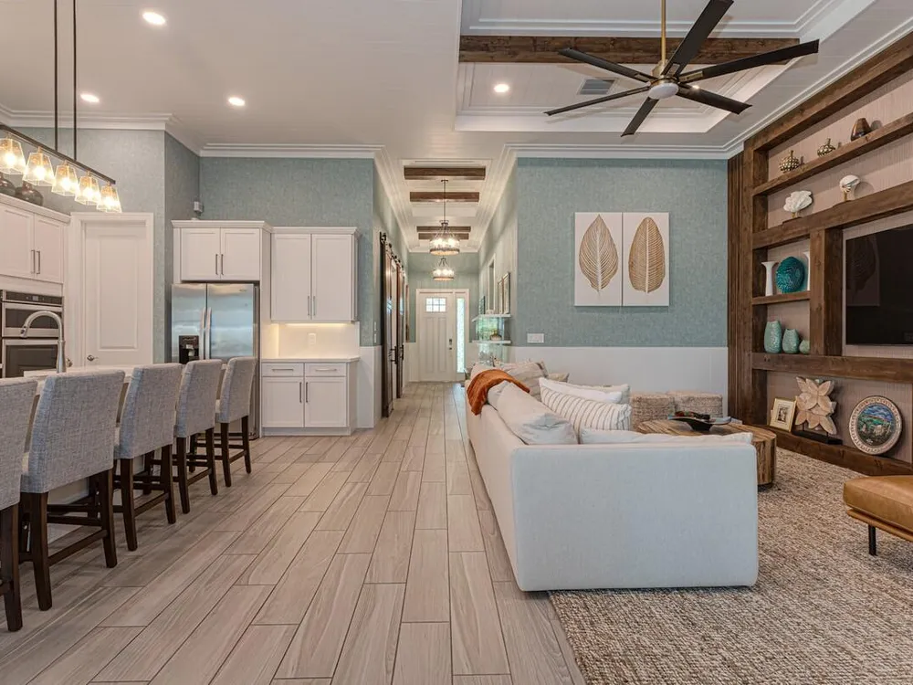 Fully furnished home in Regency at Avenir, Palm Beach Gardens newest 55+ community by Toll Brothers. Open floor plan featuring 3 bedrooms, 2 1/2 bathrooms with $ 350,000 in upgrades after closing. Custom designed throughout complete house with walk-in closets, wood cladding, wallpaper, custom living room and master bedroom-built in's, shiplap ceiling, crown molding, barn doors, etc. This is truly a turnkey masterpiece as everything is included, even the tv's. Patio area with retractable screen. Stunning pool area with pool heater and salt water. Ring camera system with 3 cameras and flood lights. Incredible resort style amenities clubhouse with exercise/weight room, yoga room, billiards and card room, golf simulator and kitchen area. Large pool with grilling area. Tennis and pickleball