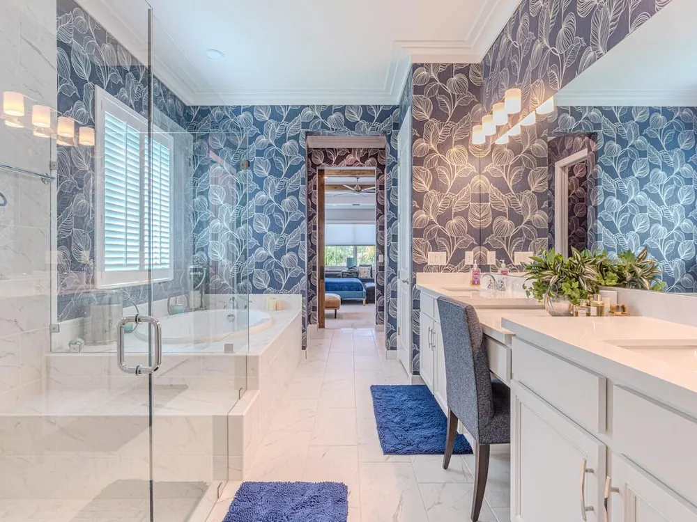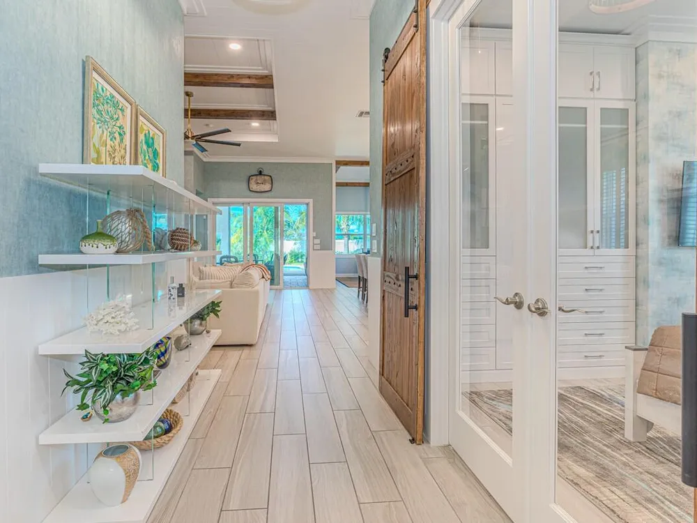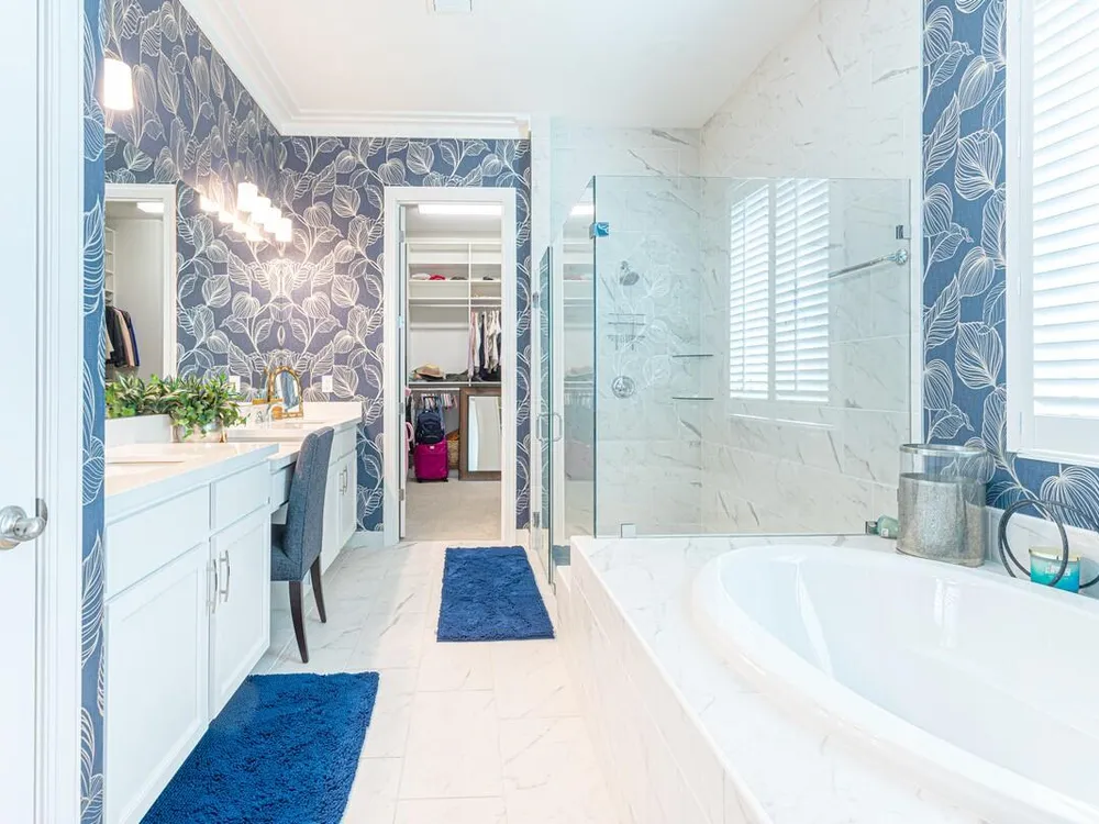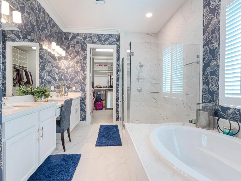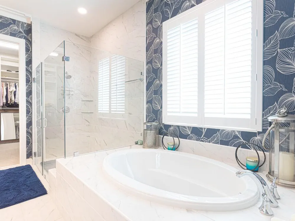 - Built-in Shelving, Closet Cabinetry, Kitchen Island, Pantry, Garden Tub/Roman Tub, High Ceilings, Walk-In Closet(s), Blinds, Storm Window(s), Plantation Shutters, Dual Sinks, Separate Shower, Bathtub