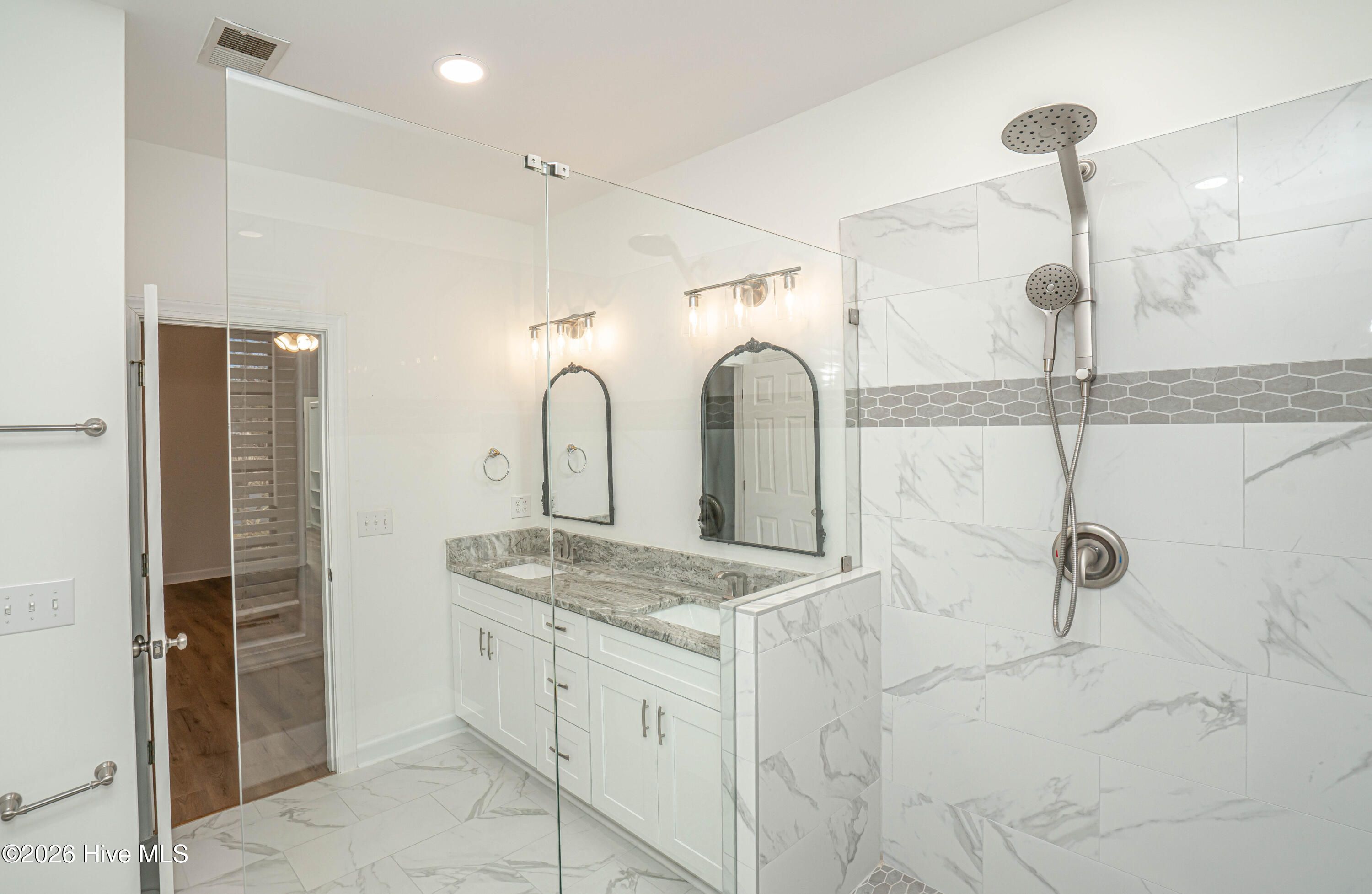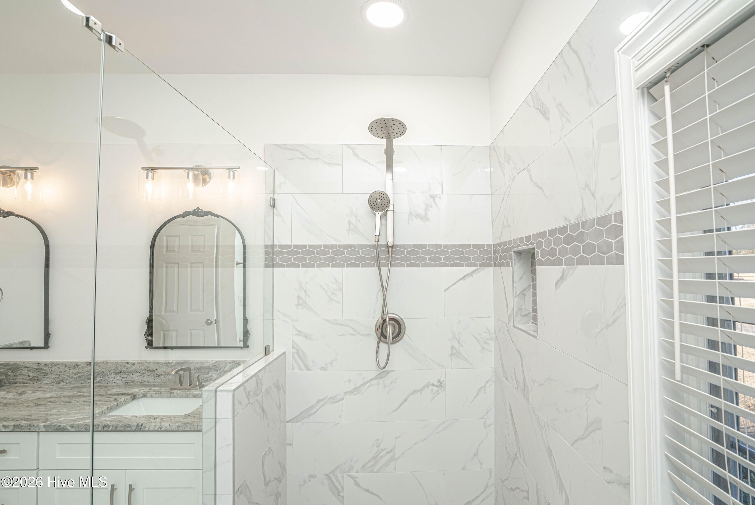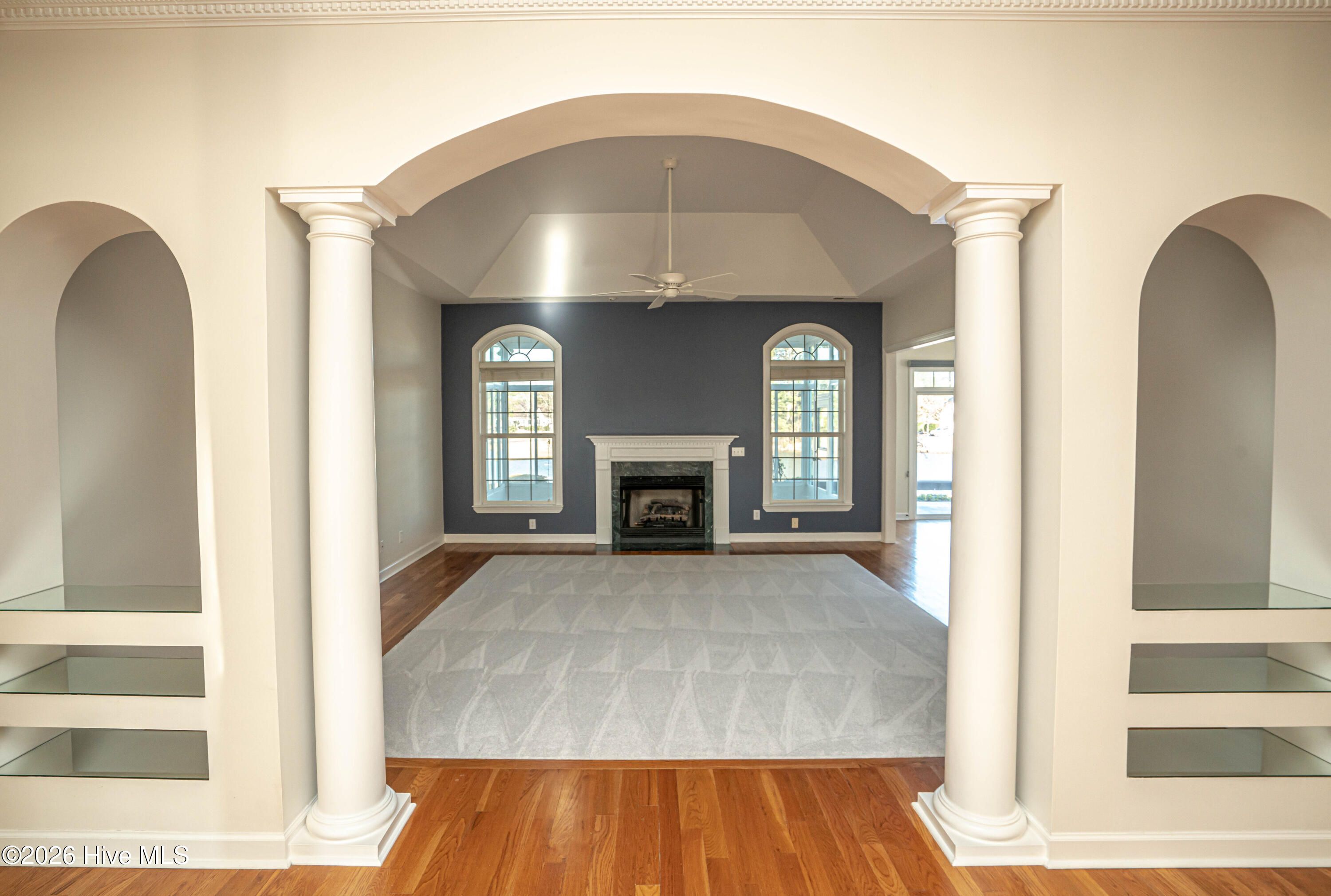 - Master Downstairs, Walk-In Closet(s), Vaulted Ceiling(s), Tray Ceiling(s), High Ceilings, Entrance Foyer, Bookcases, Kitchen Island, Ceiling Fan(s), Pantry, Walk-In Shower, Blinds