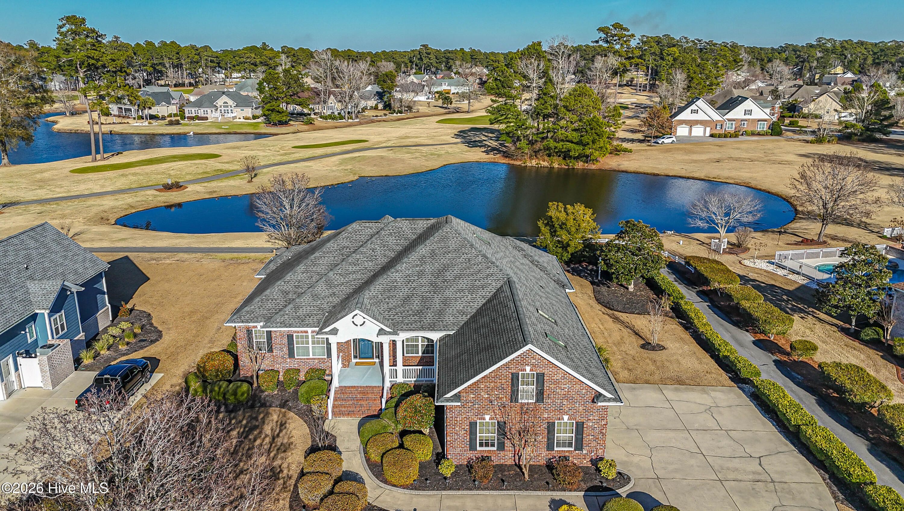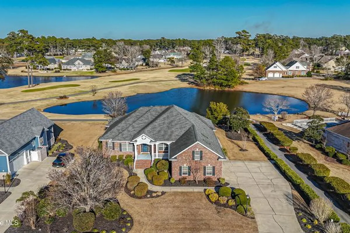 Beautifully upgraded and recently remodeled home with rare golf and pond views in the amenity-laden community of Brunswick Plantation. All of the updates have been done at the owner's expense so move right in and start living the good life in Coastal NC. Enter the front door and note the beautiful hardwood floors leading you through the main living spaces. The marble framed fireplace in the great room draws you in. Arrive in the updated kitchen: all new appliances, statuario blue quartzite countertops, a stylish backsplash and built-in corner cabinet. Go with the flow to the office with double glass doors and built-in bookshelves.The primary bedroom is on the opposite side of the great room providing privacy. Its bath has a new tiled walk-in shower, new fixtures, vanity, and flooring. New carpet, fresh paint, and custom shelving was added in the primary bedroom closet. Two guest bedrooms, 2 full bathrooms, a bonus room, and heated/cooled storage complete the indoor space. The hidden improvements: reverse osmosis system for the kitchen and fridge and whole home water filtration system. Brunswick Plantation is a gated community with top notch amenities including a golf clubhouse/restaurant, 27 holes of world class golf, outdoor pools, a heated indoor pool, fitness center, pickleball/tennis courts, and just a short drive into Calabash for fresh seafood & restaurant options. Phenomenal location as it's only a 10 minute to the sand on Sunset Beach, 10 minutes into North Myrtle Beach for even more shopping/restaurants, and you're surrounded by incredible golf courses. This home is truly move-in ready!