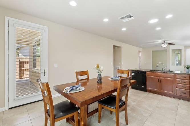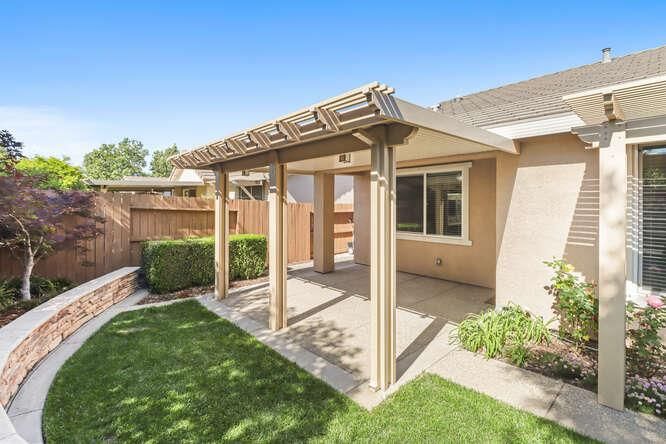 Some homes simply feel right the moment you arrive. This thoughtfully maintained Aiden floor plan in Del Webb Glenbrooke, one of Elk Grove's most sought-after 55+ communities, is ready to welcome its next chapter. A rare opportunity to own an Aiden floor plan known for its smart, efficient layout and single-story ease. Inside, 1,372 square feet of living space is spread across 2 bedrooms plus a den and 2 full bathrooms, offering the perfect balance of comfort and simplicity. Rich hardwood floors flow through the main living areas, while the open layout connects the spacious living room to the kitchen and dining nook with ease. The kitchen features warm cabinetry, dark granite countertops, a stone-look backsplash, and a breakfast bar peninsula that keeps conversation flowing while you cook. The primary suite includes double sinks and a walk-in closet, while the inside laundry room with cabinetry adds everyday convenience. Step outside and you will find one of this home's true highlights: a professionally designed backyard with a trellis and full patio cover, curved stacked-stone planters, lush garden beds bursting with roses and Japanese maple, and a manicured lawn that feels like a private garden retreat. Situated directly across from the clubhouse and community parks, you are steps from the fitness center, pool, spa, and the kind of daily activity that makes this community so special. Come see it for yourself.