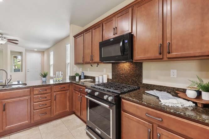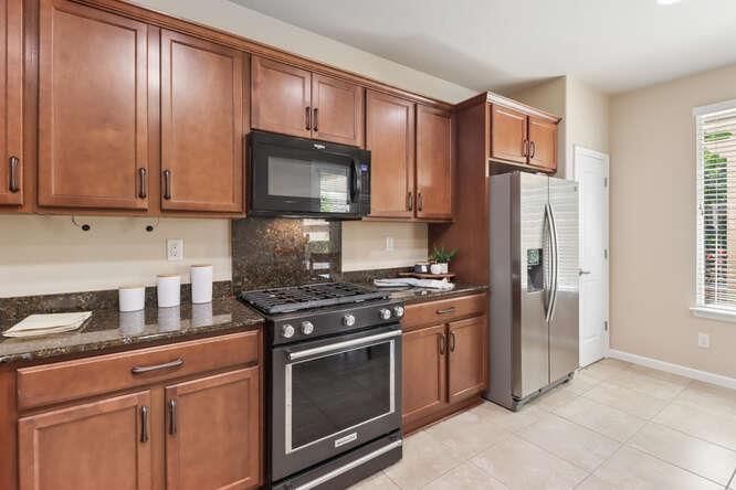 - Free-Standing Gas Range, Dishwasher, Disposal, Microwave, Plumbed For Ice Maker