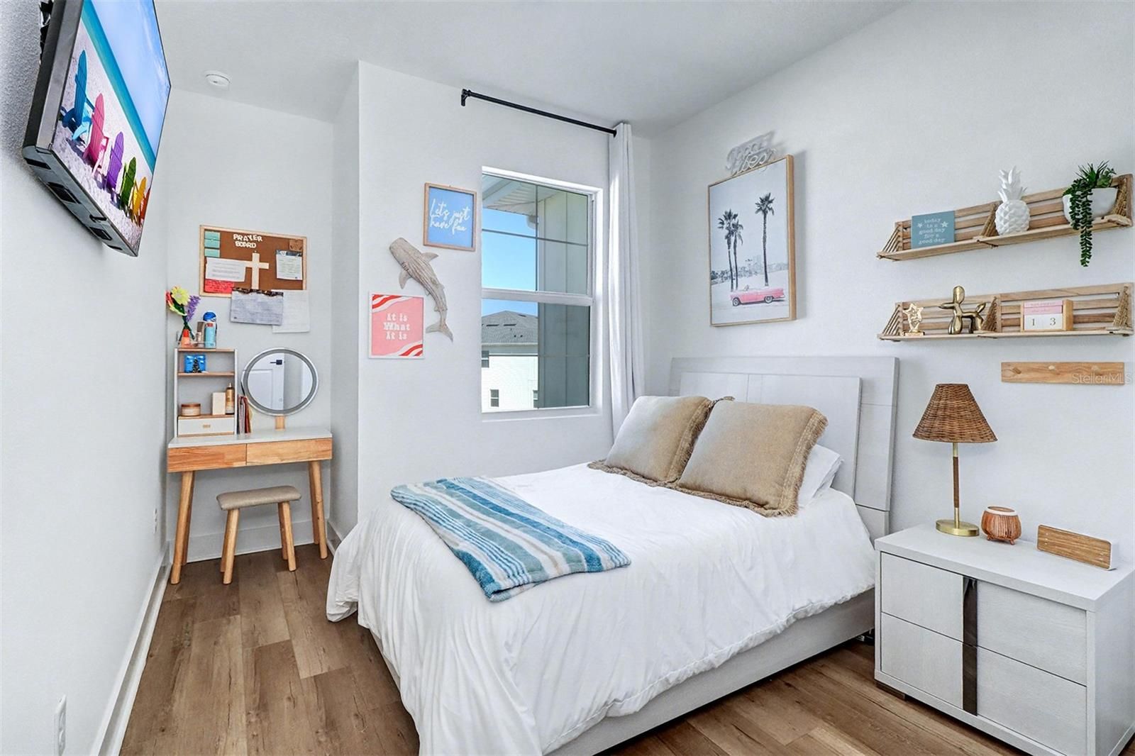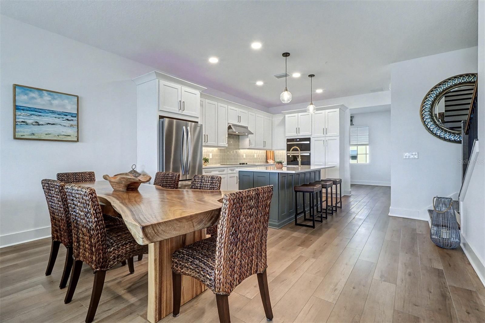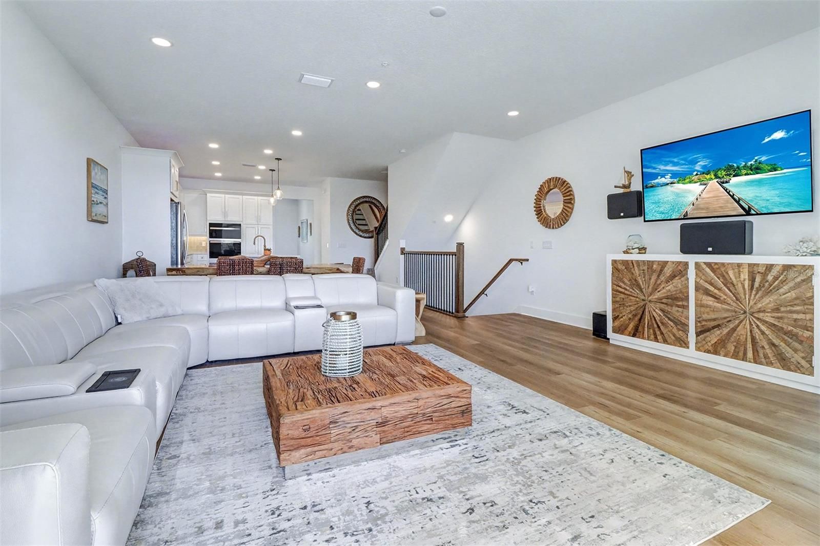 Welcome to luxurious contemporary living, where this exquisite tri-level townhome lives like a single-family residence, offering both the space you desire and the low-maintenance lifestyle you deserve. Nestled within a coveted, secure enclave, this residence provides a serene escape without sacrificing urban convenience. Step inside to discover an open-concept floor plan, where soaring ceilings and expansive glass sliders flood the space with natural light, highlighting the gleaming wide luxury vinyl plank floors that extend throughout. The heart of this home is the beautiful gourmet kitchen featuring custom cabinetry, a sprawling quartz covered island, and gorgeous upgraded stainless steel appliances. This large Kitchen/Dining/Living combination is enhanced with a balcony and spectacular water views. The second floor also includes a wonderful flex space and a half bath conveniently located for guests. The primary sweet is a large tranquil retreat located on the 3rd floor also capturing beautiful water views. The primary bathroom features dual vanity sinks, a large walk in shower, and an expansive walk in closet. Primary suite, secondary bedrooms, 3rd bathroom, and laundry room are all located on the 3rd floor. This fabulous community offers a kayak launch, fire pit, clubhouse with fitness center, walking trails, tennis courts, and a stunning resort style heated pool. Located just a short drive from some of the areas best beaches, shops, and cultural hotspots, this remarkable find is a rare opportunity to experience luxury living at its finest. Townhome was recently built in 2024 and still has Builder home warranty in affect until 1/17/2026.