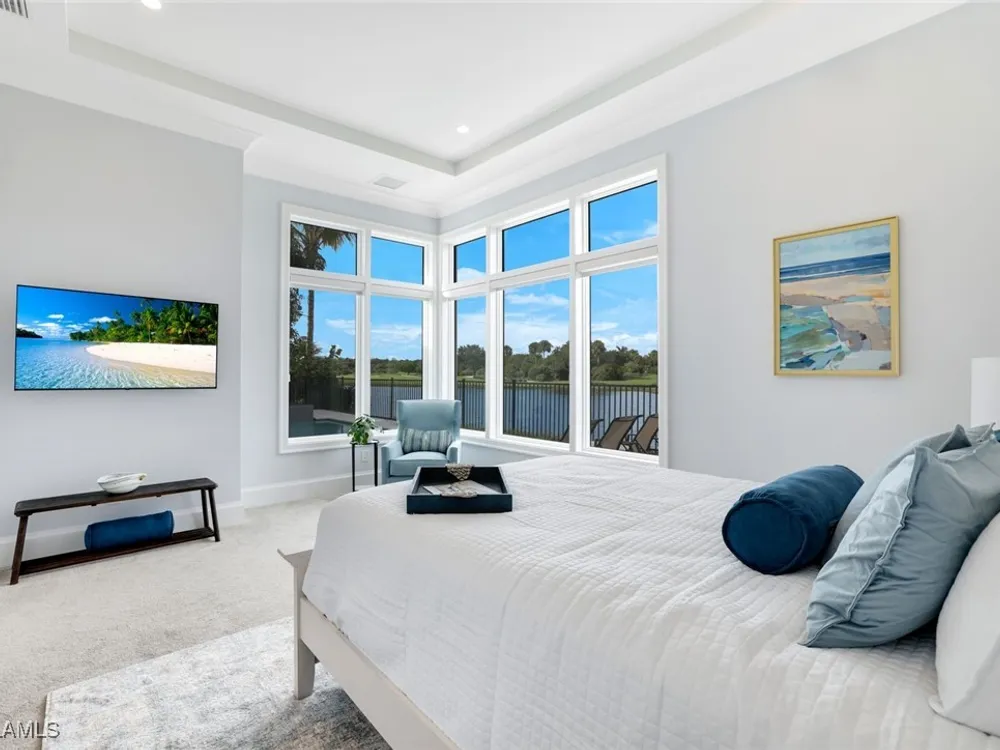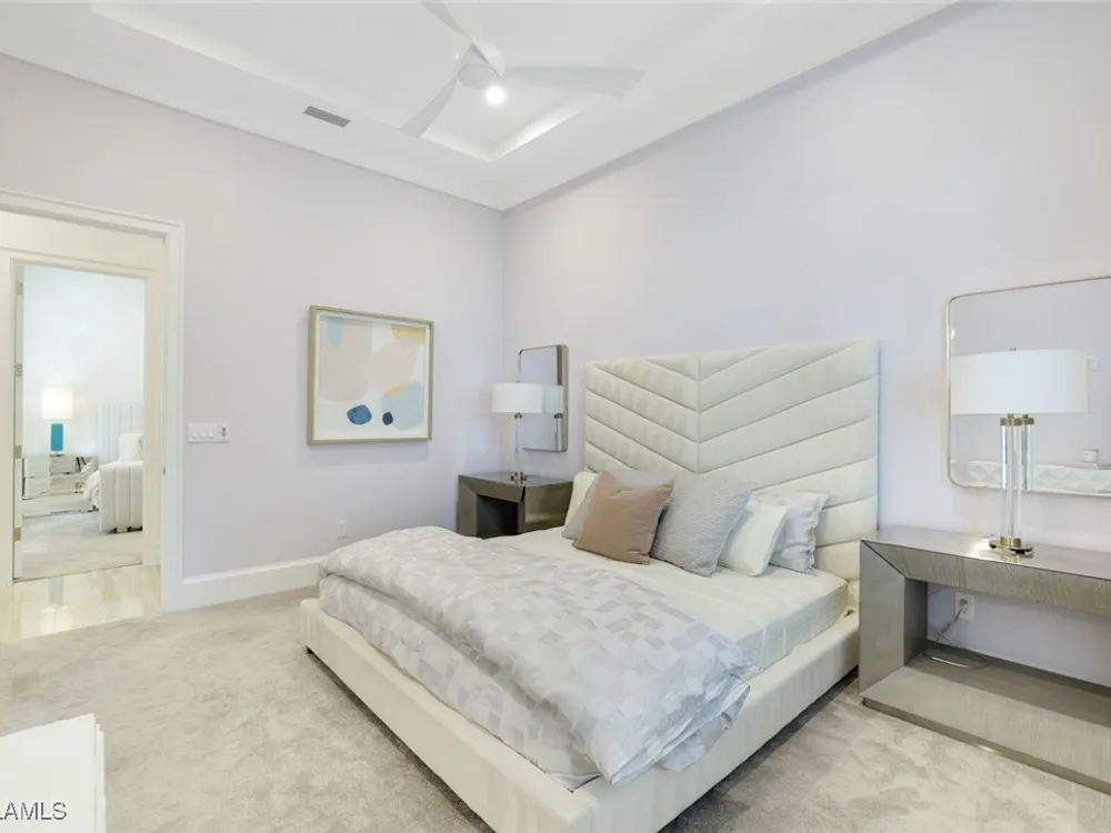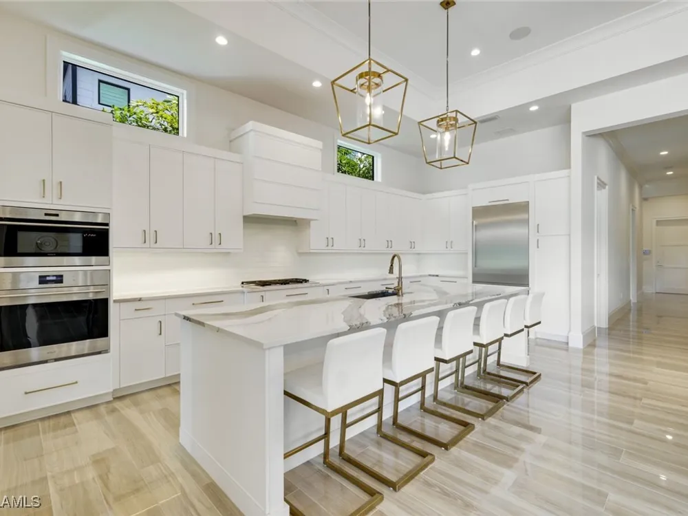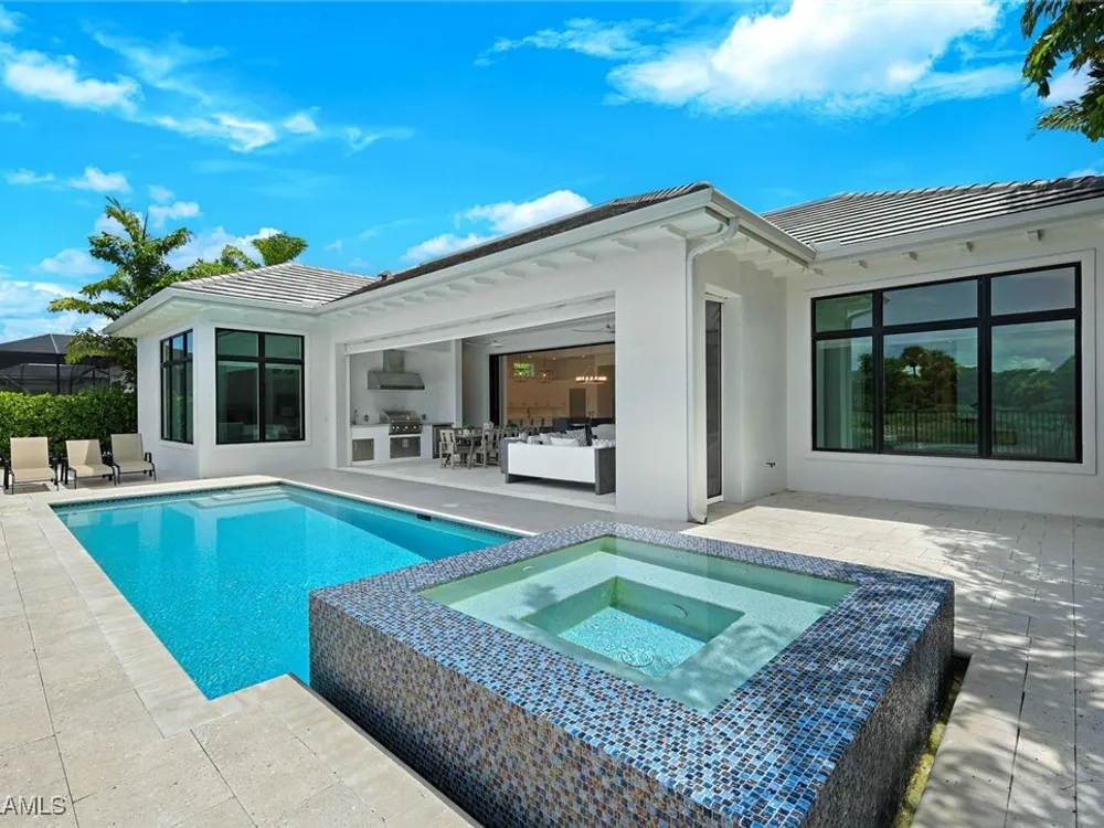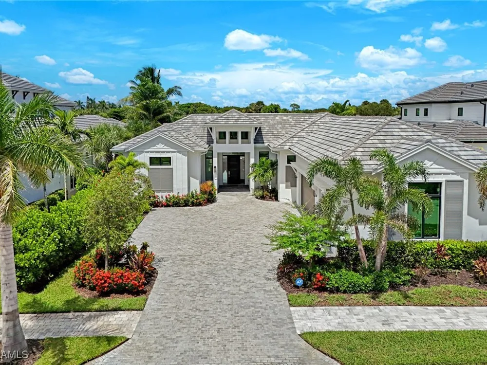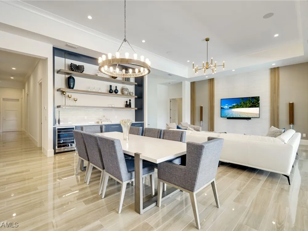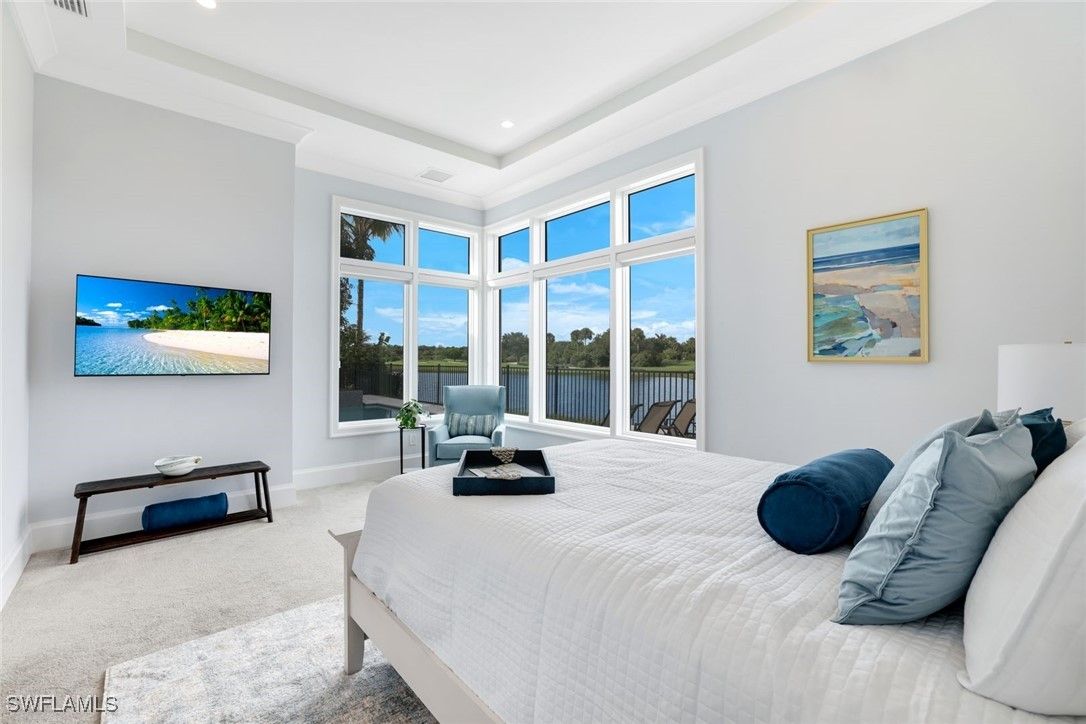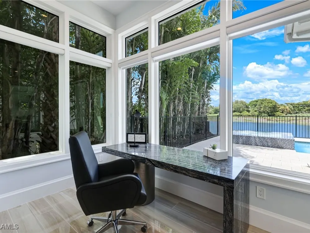 IMMEDIATE FULL GOLF MEMBERSHIP! Designer curated 4 bedroom, 4½ bath home within the exclusive enclave of The Peninsula in Treviso Bay. Easily entertain in the living area with custom beverage bar and retractable sliders which seamlessly blend the inside and outdoor spaces. “Everyone gathers in the kitchen” around the enormous center island which seats 6! Culinary creations are easy with the Wolf gas cooktop, wall ovens and large walk-in pantry. The primary suite rivals a boutique hotel with a poolside sitting room/office plus custom walk-in closets. The bath is spa-like and boasts dual vanities, a walk-around shower, dual shower heads and custom niches. Guests have their choice of bedroom suites, each with oversized closets and designer baths. The lanai is expansive with outdoor kitchen. The pool and spa are sun-drenched with water-to-golf views. Oversized 3 car garage, custom wood details, large beverage bar, electric storm screens plus designer wallpaper and lighting. This special home is walking distance to the Treviso Bay golf clubhouse. Full golf membership is immediate and without the heavy buy-in that other memberships require. In addition, members have exclusive access to TPC golf courses worldwide. Multiple dining options plus an extensive calendar of gatherings complete your Treviso Bay lifestyle. Beyond the privacy of Treviso Bay is the renowned dining and shopping of Naples and Marco Island. This home is very special offering and sold beautifully furnished.