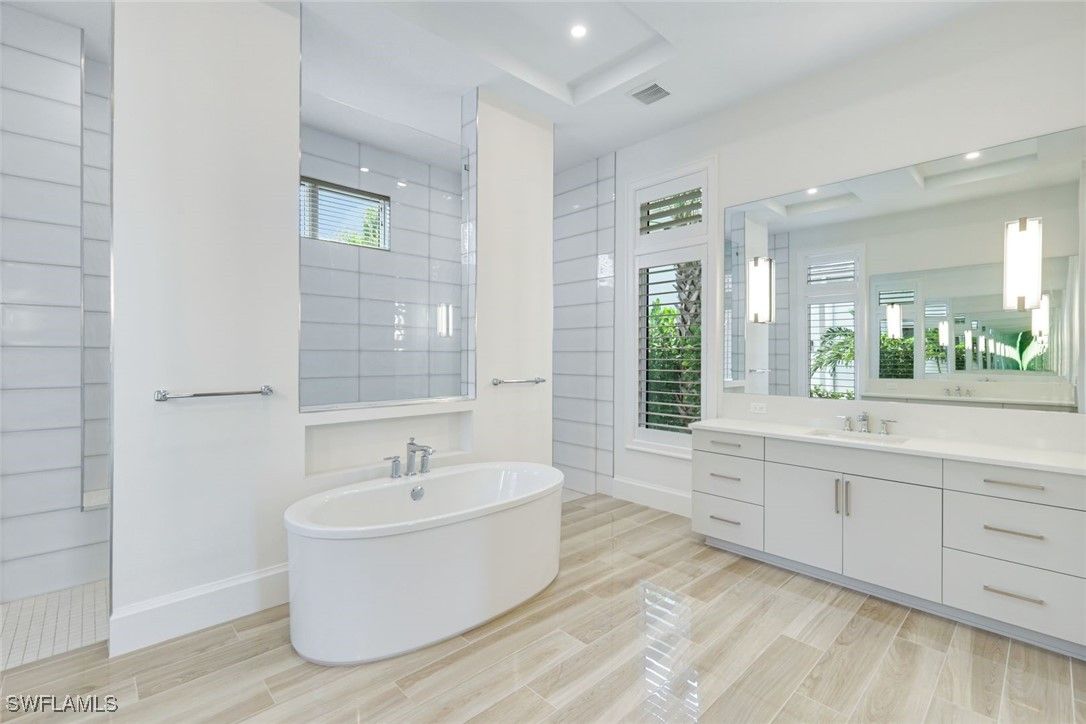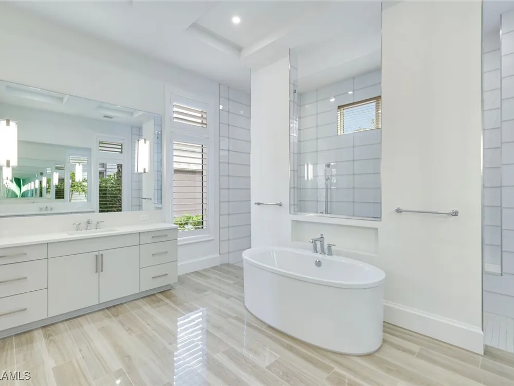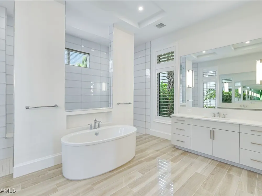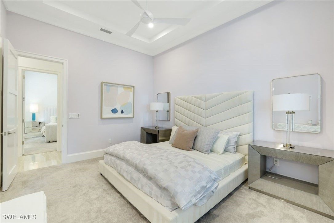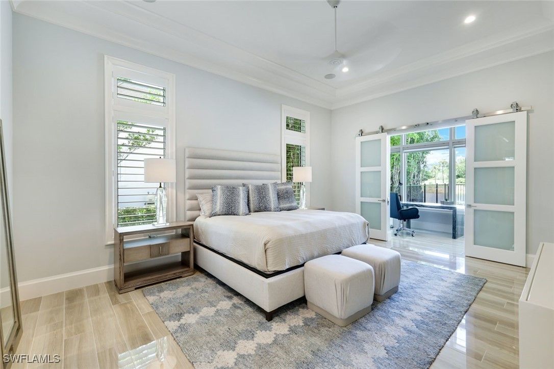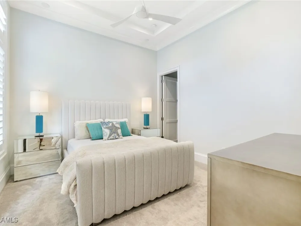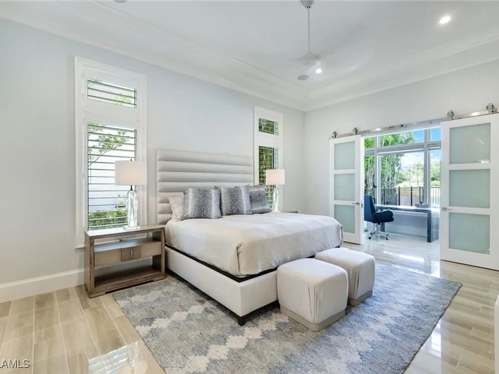 IMMEDIATE FULL GOLF MEMBERSHIP! Designer curated 4 bedroom, 4½ bath home within the exclusive enclave of The Peninsula in Treviso Bay. Easily entertain in the living area with custom beverage bar and retractable sliders which seamlessly blend the inside and outdoor spaces. “Everyone gathers in the kitchen” around the enormous center island which seats 6! Culinary creations are easy with the Wolf gas cooktop, wall ovens and large walk-in pantry. The primary suite rivals a boutique hotel with a poolside sitting room/office plus custom walk-in closets. The bath is spa-like and boasts dual vanities, a walk-around shower, dual shower heads and custom niches. Guests have their choice of bedroom suites, each with oversized closets and designer baths. The lanai is expansive with outdoor kitchen. The pool and spa are sun-drenched with water-to-golf views. Oversized 3 car garage, custom wood details, large beverage bar, electric storm screens plus designer wallpaper and lighting. This special home is walking distance to the Treviso Bay golf clubhouse. Full golf membership is immediate and without the heavy buy-in that other memberships require. In addition, members have exclusive access to TPC golf courses worldwide. Multiple dining options plus an extensive calendar of gatherings complete your Treviso Bay lifestyle. Beyond the privacy of Treviso Bay is the renowned dining and shopping of Naples and Marco Island. This home is very special offering and sold beautifully furnished.