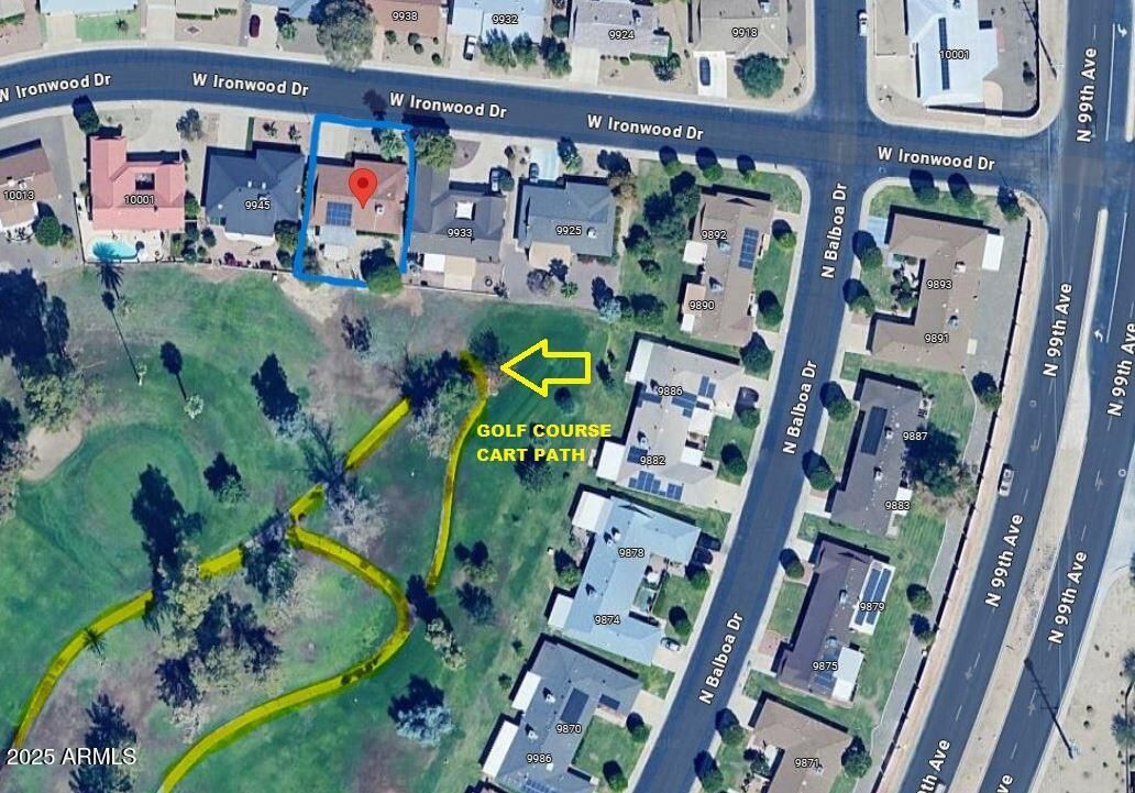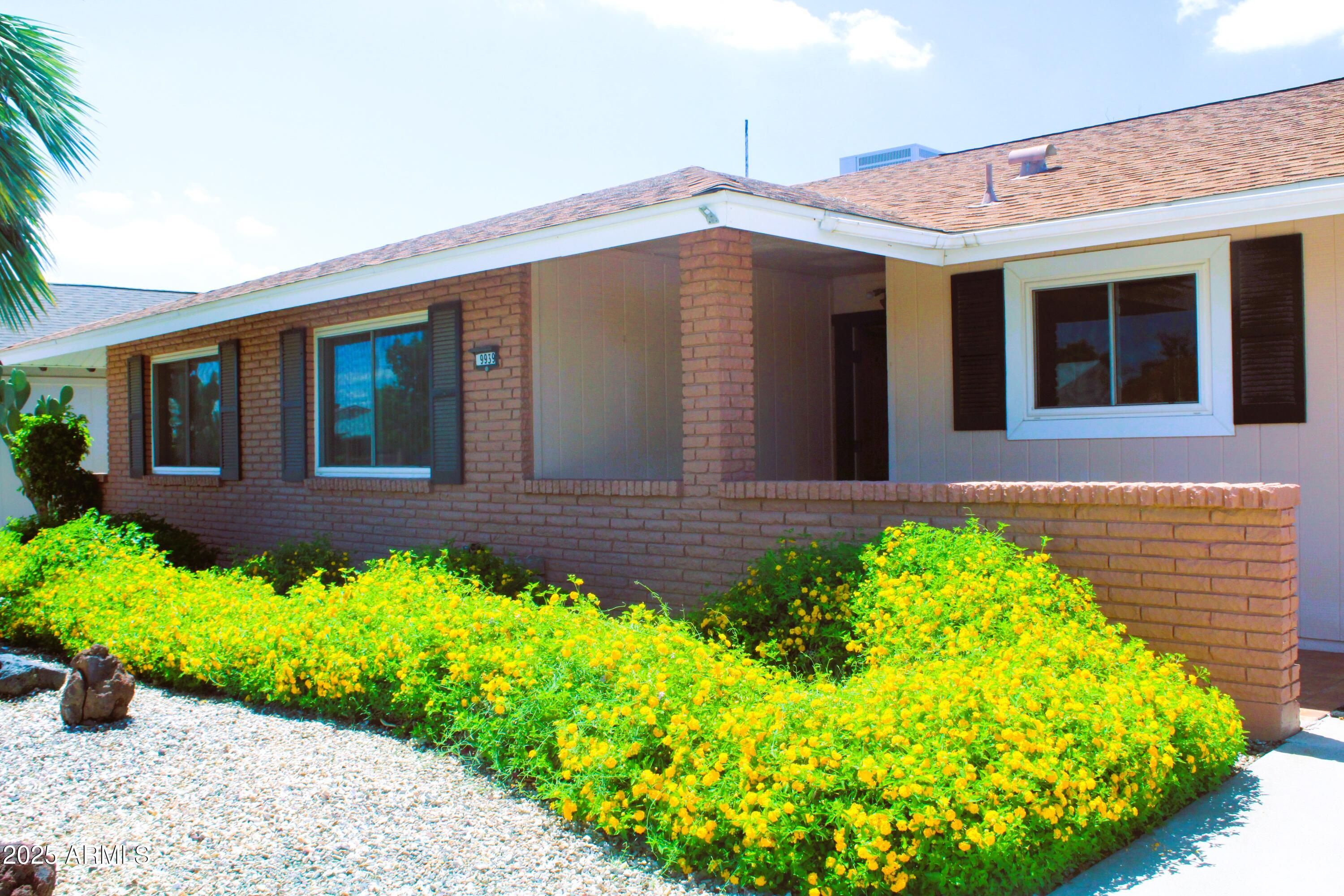 Oh WOW! You'll Say that from the Moment you Walk Up to the Front Door! Not your Typical Sun City Home. Walk inside this 3 Bedroom/2 Bath Home & You'll Find this One Remodeled w/Warm & Comforting Colors. Enter & Look Straight Out to a Golf Course View. The Dining Area Opens to a Bonus Room which Opens to a Screened in AZ Room ALL with the Same View. The Cart Path does NOT go Behind the Home which Reduces Direct Cart Traffic w/More Privacy. Upgrades Include Doors, Dual Pane Windows, 18''X18'' Saltillo Style Tile, PLUS the Cabinets have Pull-Out Shelves! SS Appliances. HVAC in 2022. Sewer Pipe Relined. 200-Amp Service Replaced in 2013 when the Solar was Installed. Colorful Mature Landscaping Not Just All Rock. Garage Golf Cart Parking. Check out the Pictures and see the Personality!