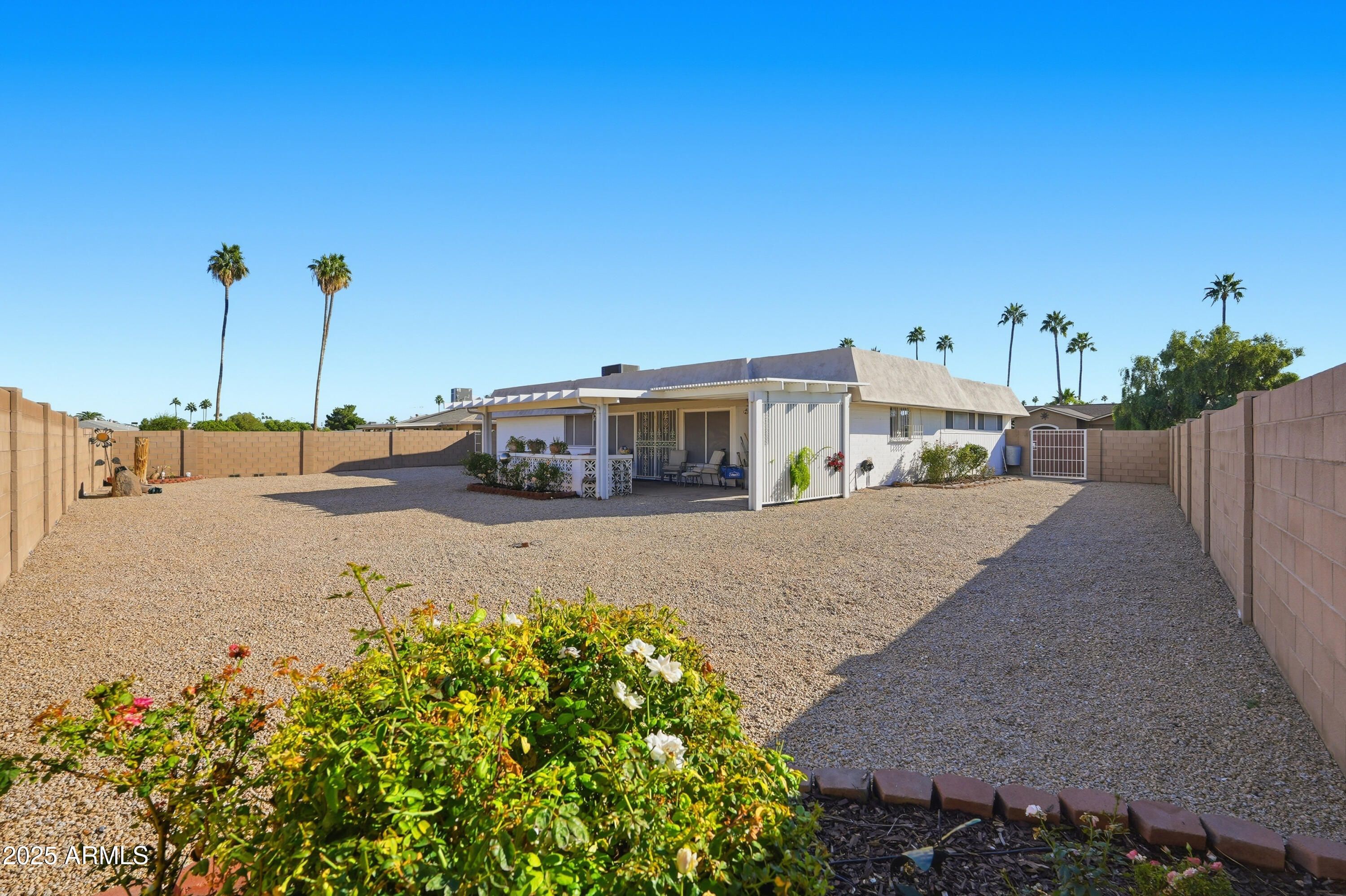 Well-maintained 3-Bed, 2-Bath Ranier model home on a corner lot in the heart of the active adult community of Del Webb's Sun City. The paver driveway and newer RV gate give the home beautiful, curb appeal. Entering the home, you will enjoy beautiful hardwood floors with numerous updates throughout. An enclosed Arizona room provides additional living space. A large workshop/laundry room off the garage, can be used as a workshop, workout room or a scullery. The 2-car garage has room for golf cart storage. Bring your pets, the large backyard is fully fenced with a block wall. The covered patio provides additional living space in the mild AZ weather. . Lovingly cared for and move-in ready. HOA is optional.