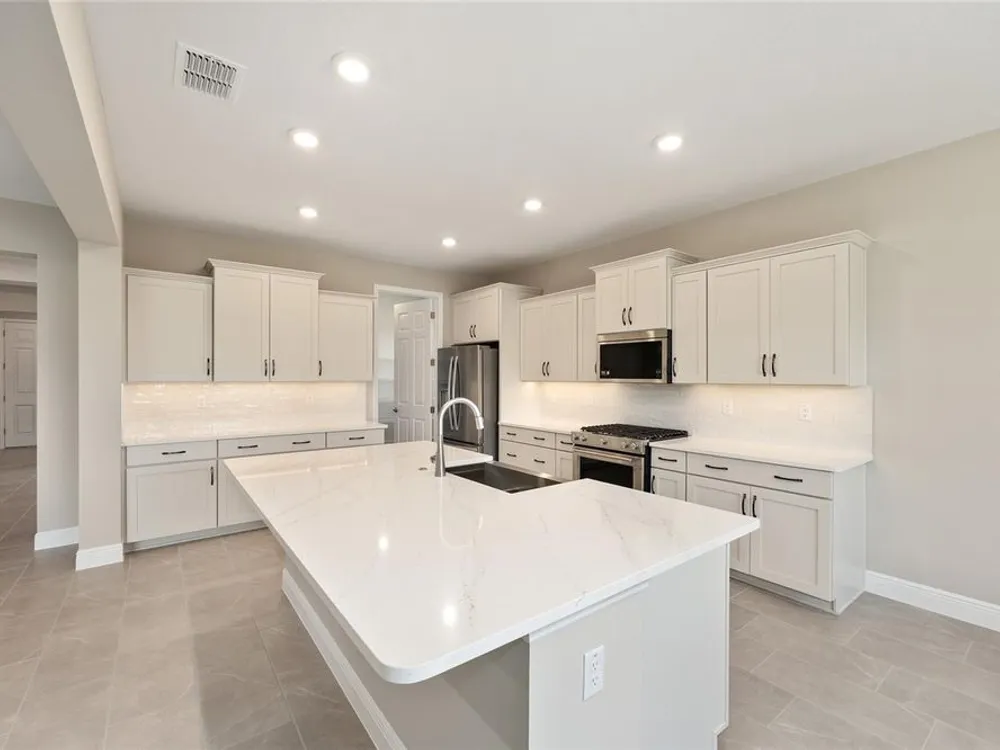 Welcome to this beautiful, move-in ready Beaumont model, designed with comfort, convenience, and Florida living in mind. This brand new home features 2 bedrooms, 2 bathrooms, a spacious great room, and a flexible floor plan that fits your lifestyle. The heart of the home is bright and open, with a comfortable great room that flows into the breakfast area, creating an ideal space for everyday living or casual entertaining. The kitchen is modern and inviting, perfect for everything from quiet mornings to hosting guests. Wood-look tile runs throughout the main living areas, offering a stylish and durable foundation. The flex room gives you options for a home office, hobby space, or reading nook, while the full laundry suite adds everyday ease. The 2-car garage includes a dedicated golf cart space, giving you plenty of room for storage and convenience. Tucked into a gated 55+ community known for its exceptional amenities and welcoming atmosphere, this home is ready for you to settle in and enjoy the lifestyle you've been waiting for.