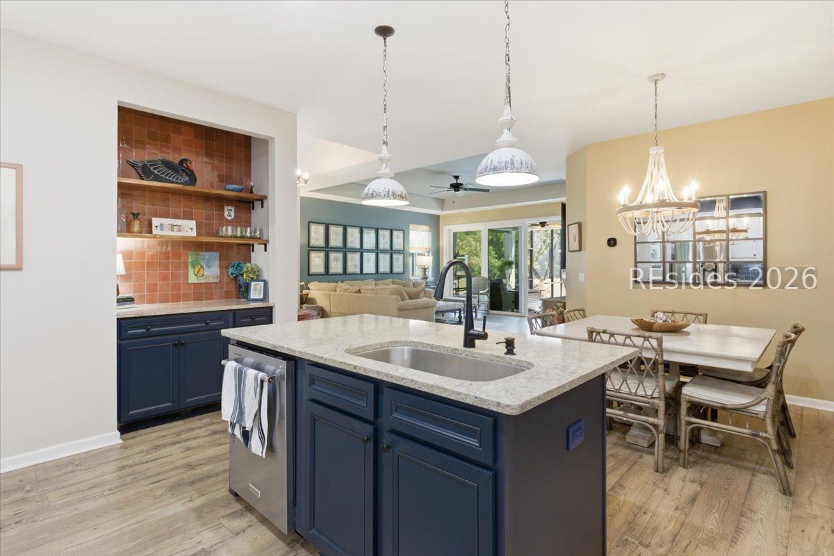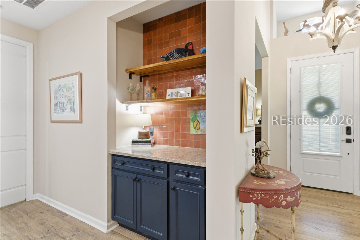 Welcome to effortless coastal living in this beautifully designed Antigua model, perfectly positioned to capture serene lagoon and preserve views. From the moment you arrive, you'll feel a sense of calm as nature surrounds you, offering both privacy and a picturesque backdrop that changes with the light of each day.One of the standout features of this home is the custom dry bar-an elegant and practical addition that elevates your entertaining experience. Perfect for serving cocktails, displaying your favorite glassware, or creating a dedicated coffee or wine station, this space adds a touch of sophistication and convenience that truly sets this home apart.The real magic happens when you open the triple slider for indoor-outdoor living onto your extended screened-in lanai. This premium homesite delivers breathtaking lagoon and preserve views that create a serene, ever-changing backdrop from your screened-in lanai. Watch herons glide across the water at sunrise, catch glimpses of wildlife in the preserve, and enjoy spectacular sunsets that paint the sky in shades of orange and pink. These protected views ensure your privacy and connection to nature for years to come.The Antigua floor plan offers the ideal blend of comfort and functionality. The primary suite serves as a peaceful retreat, designed with comfort in mind and complemented by calming views, a walk-in closet with custom built-ins, and a well-appointed ensuite bath. Additional bedrooms provide flexibility for guests, a home office, or hobby space. 9- to 10-foot ceilings, 8-foot doors, and premium finishes throughout reflect the quality and attention to detail that define Lowcountry living.Outside your door, the Margaritaville Hilton Head lifestyle awaits. Resort-style amenities include pools, fitness facilities, pickleball courts, and the famous Fins Up Fitness Center. Stroll to community events, enjoy live music, and embrace the "no worries" philosophy that makes this community unlike any other. Plus, you're just minutes from Hilton Head Island's world-class beaches, championship golf courses, and award-winning dining.Whether you're seeking a full-time residence or the ultimate vacation retreat, this Antigua model checks every box. The combination of premium upgrades, unobstructed natural views, and an unbeatable location creates a rare opportunity in one of the Lowcountry's most sought-after communities.