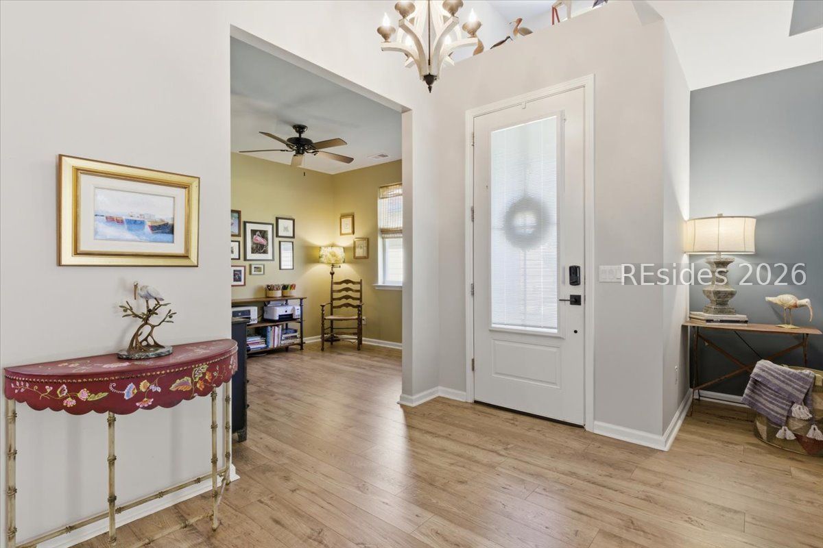 - Ceiling Fan(s), Main Level Primary, Multiple Primary Bathrooms, Smooth Ceilings, Entrance Foyer