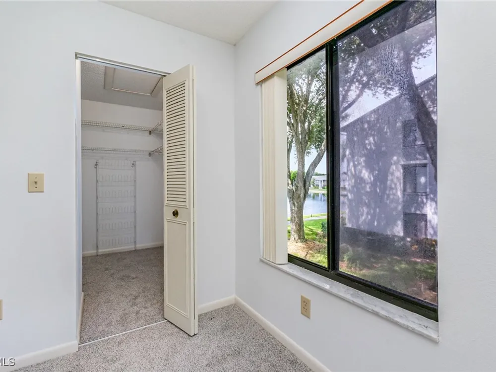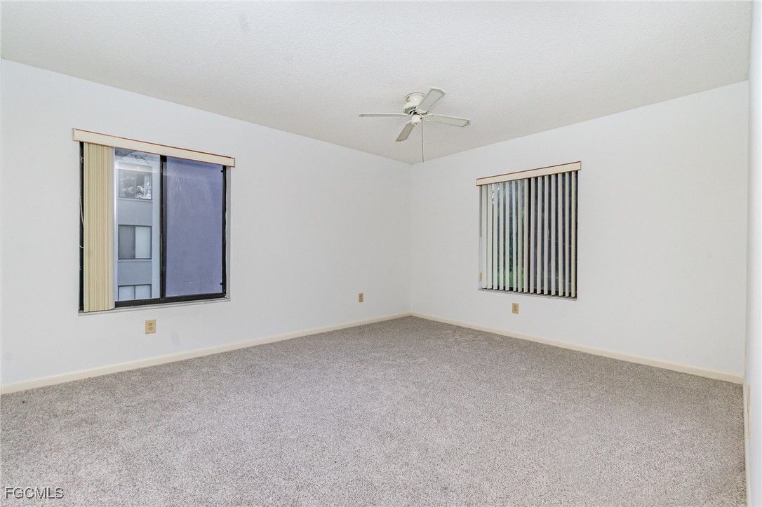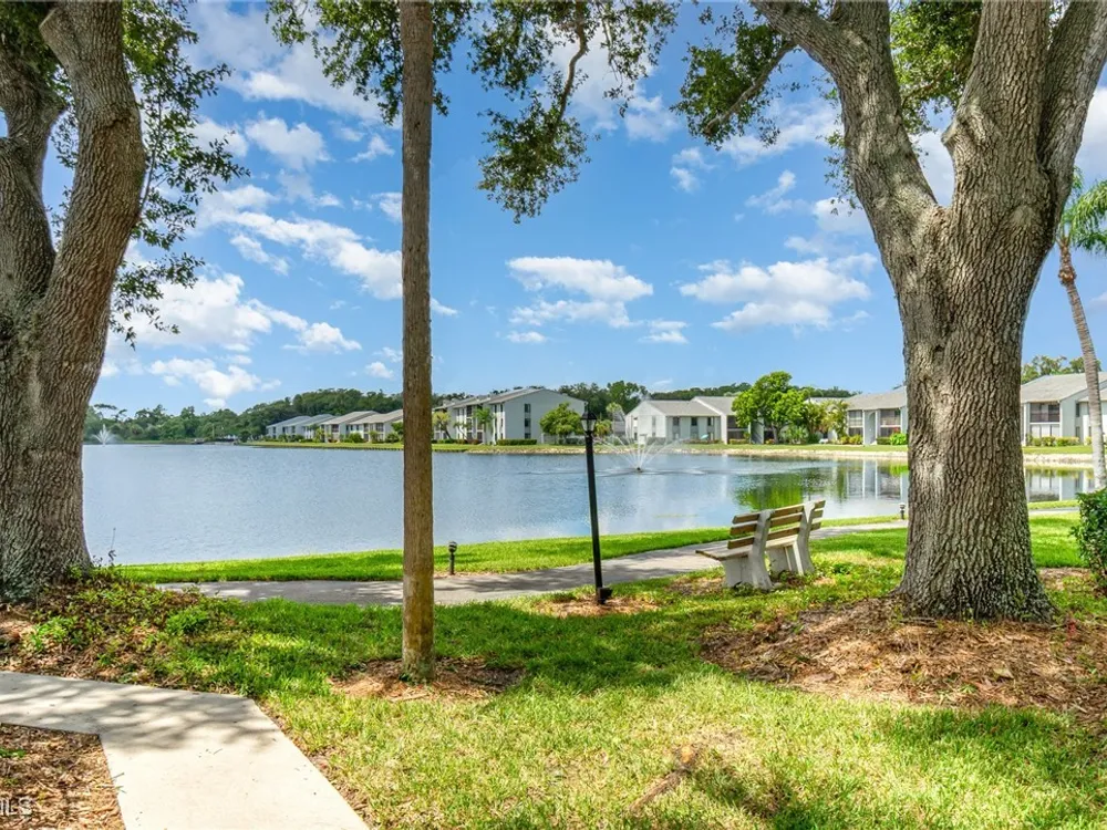 Located in a gated 55+ community, this 2/2 2nd floor corner unit is ready for immediate occupancy. Professionally cleaned and freshly painted throughout in a neutral color. New carpet has just been installed in the master bedroom and walk-in closet. This property is well-maintained with tree-lined streets and lush green spaces, even a butterfly garden, dog park and a deck where you can watch the many turtles swim in the lake. Amenities galore, including a 0.9 mile walking path around a 20 acre lake, large pool where water aerobics and water volleyball can be enjoyed, tennis/pickleball courts, bocce ball, and a clubhouse where social events and activities are regularly held. There is an on-site manager to assist in navigating all that this community has to offer. Entertainment, shopping, and dinning are just a short drive away in downtown Fort Myers. Travel is made easy with access to two airports (RSW and Punta Gorda Airport); each can be reached in about 20-25 minutes from this property.