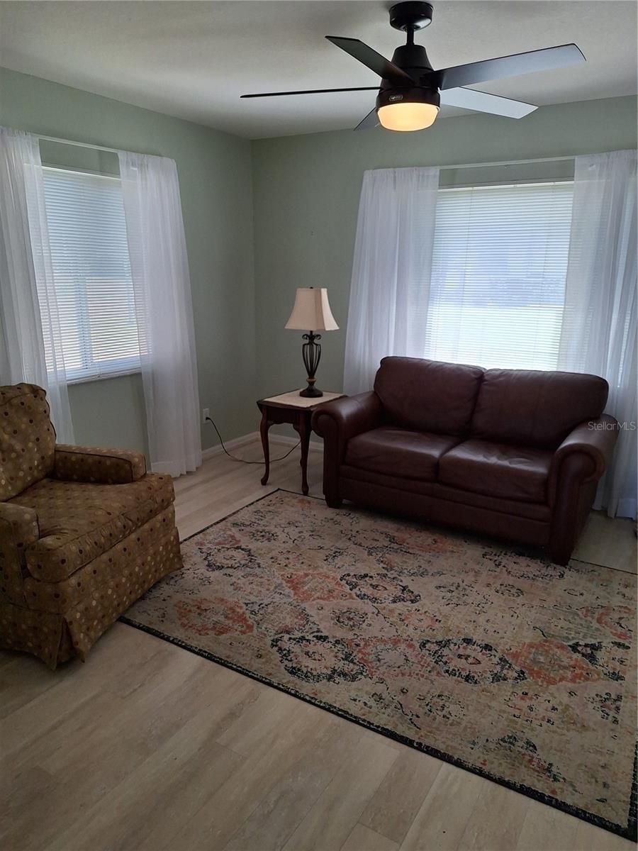 - Ceiling Fan(s), Eat-in Kitchen, Living/Dining Room, Main Level Primary, Split Bedrooms, Thermostat, Vaulted Ceiling(s), Walk-In Closet(s), Window Treatments