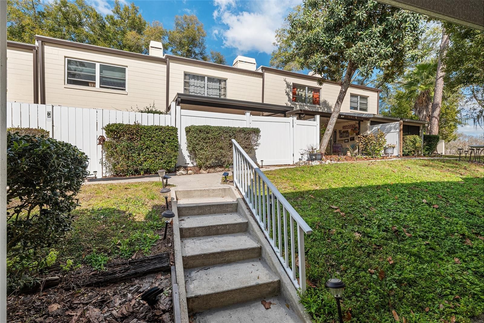 Get ready to enjoy an amazing Florida lifestyle in this spacious 1,853-square-foot townhome offering 2 bedrooms, 2.5 bathrooms, and both a full-size family room and living room. Located in the Circle Square Woods neighborhood of On Top of the World, Ocala's premier, gated 55+ community known for top-of-the-line resort-style amenities, this home offers all of the living space you have been looking for. A tree-shaded front yard overlooks peaceful and beautifully manicured grounds with a park-like common area complete with a gazebo, providing a relaxing place to enjoy the outdoors. Golf cart access makes it easy to reach nearby shopping, dining, and essential services, and abundant community activities and amenities are only a short distance away. The versatile layout includes a full-size living room and a separate family room centered around a cozy stone-surround fireplace that adds warmth and character to gatherings with friends and family. The kitchen features stainless-steel appliances and a large center island overlooking the family room, perfect for meal prep and casual dining options. The stairway walls of this villa have also been constructed to allow for the installation of a motorized chair lift, making the upper level more easily accessible. The owner’s suite provides a generous retreat with plenty of room to unwind, along with an en suite bath that includes a spacious step-in shower with detailed tilework and a conveniently located linen closet. The guest bedroom also features its own private en-suite bath, while an additional half bath serves the main level. A covered rear patio and vinyl-fenced area create an inviting outdoor space ideal for pets, relaxation, or entertaining. Carefree living awaits as the monthly HOA fee includes basic cable, irrigation water, roof repair, exterior painting every seven years, exterior maintenance and insurance, landscaping, trash & recycling, and 24/7 monitored gates. Kick back and unwind, or head out and enjoy the endless activities available in this vibrant community overflowing with top-tier amenities. Residents have access to three golf courses, indoor and outdoor pools, recreation centers, clubs, concerts, dedicated RV parking, and Veterans’ Park, along with golf cart access to nearby shopping centers and beautiful Shalom Park. Ideally situated off Hwy 200, OTOW is close to banks, restaurants, and medical facilities, and just a short 10-mile drive south of the World Equestrian Center.