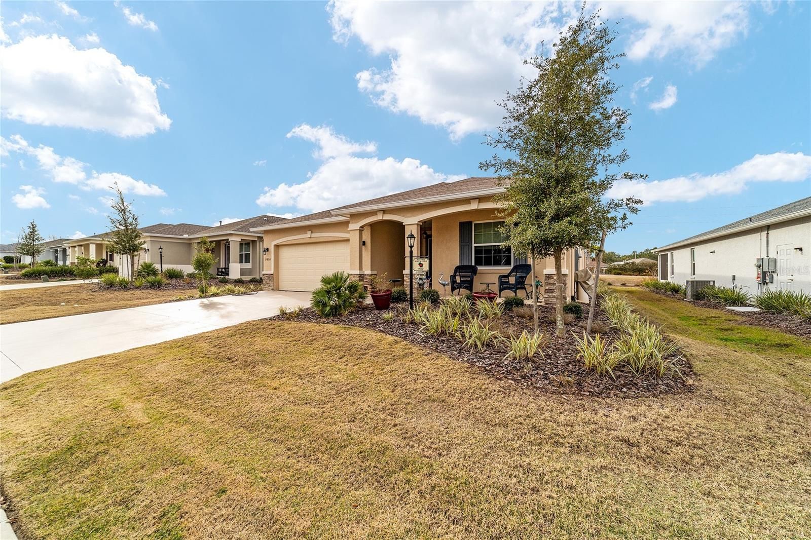 Privacy Lot: Don’t build a new home when you can have this gently used snowbird 2022 “Smart home” Sunflower that has many upgrades. This 3 bedrooms, 2 full bathrooms and an extended 2 car garage, offers cutting edge Alexa compatible devices for ultimate convenience. The Kitchen takes center stage, with staggered wood cabinets, featuring a large island with pendant lighting perfect for entertaining and additional seating. It is equipped with quartz countertops, glass mosaic backsplash, under-cabinet lighting, stainless steel appliances, and a spacious eat-in area, all seamlessly connected to the great room. This home showcases elegant crown molding in the main area, adding a touch of sophistication throughout. The spacious primary bedroom offers an en suite with a large walk-in tiled shower with duel sinks and quartz countertop. The upgraded 20x20 ceramic tile flooring throughout adds beauty and durability to the living spaces and accents the custom paint and 9 foot ceilings. This home includes a screened-in lanai and spacious front porch, offering plenty of room for seating and relaxation. The seller has also added gutters and a full house water softener. This home is also conveniently located near the Arbors, Health and Rec Center and directly across the street from the mailbox. It features curbside trash and lawncare allowing extra time to experience all of the amenities OTOW has to offer. The seller is motivated to offer a true turnkey experience by offering a completely furnished or partial furnished home as options. There is an additional refrigerator in the garage with golf cart, electric bicycles, patio furniture and washer/dryer. Crescent Ridge 4 is a welcoming community which hosts its own potluck picnics and weekly low stress pickle ball for those who are learning the game. Put this on your list as a must see.