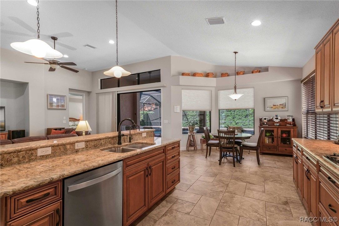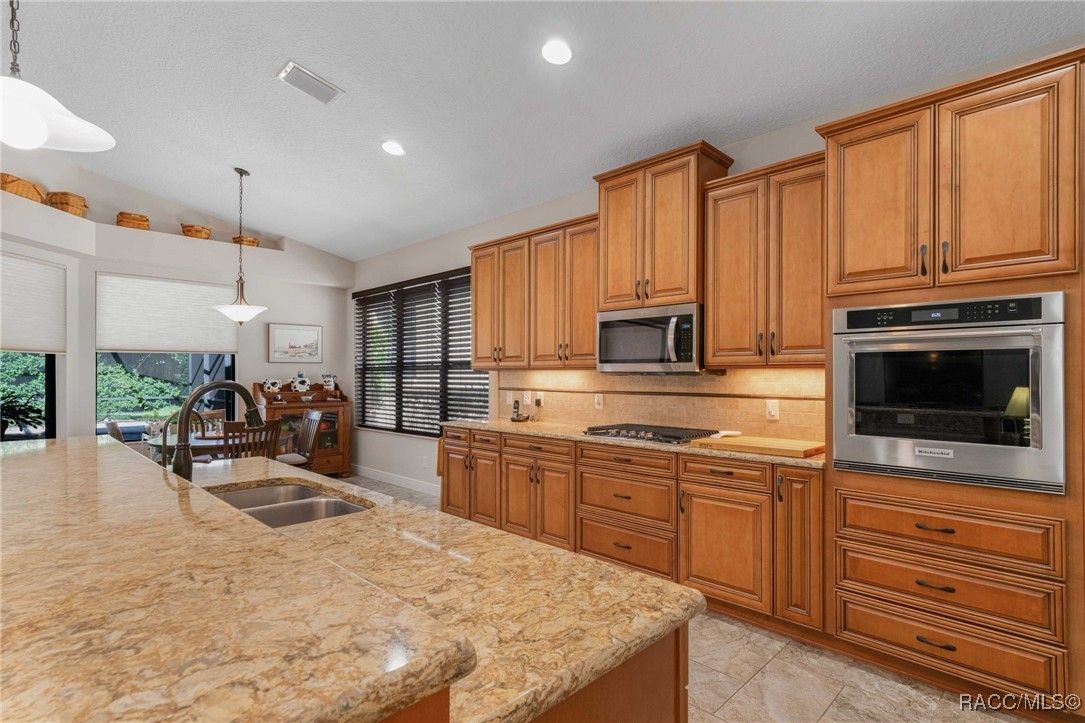 THIS METICULOUSLY CARED FOR HOME features a wide array of upgrades and an absolutely stunning swimming pool. Starting with the large kitchen which includes a gas top range, a new dishwasher, a new built-in oven and a new microwave. The floors are tile and engineered hardwood throughout, including all of the bedrooms. The primary bedroom suite features a walk-in custom closet - complete with a spacious linen cabinet and a huge shower and soaking tub. The two comfy guest rooms and office make this an extremely desirable home - plenty of room for family and guests. The office/den also offers a spacious area in which to work from home. A new gas water heater has recently been installed as well. All this opens to a gorgeous lanai with a large pool with twin waterfalls. A new chlorinator also has been installed for the salt pool. All this and the wonderful amenities Citrus Hills has to offer. This beautiful light-filled Florida home can be yours today!