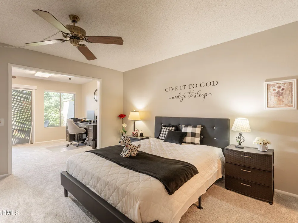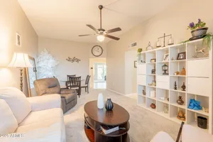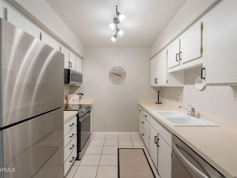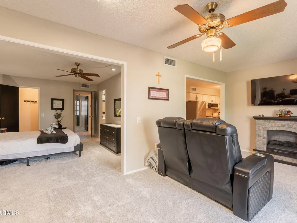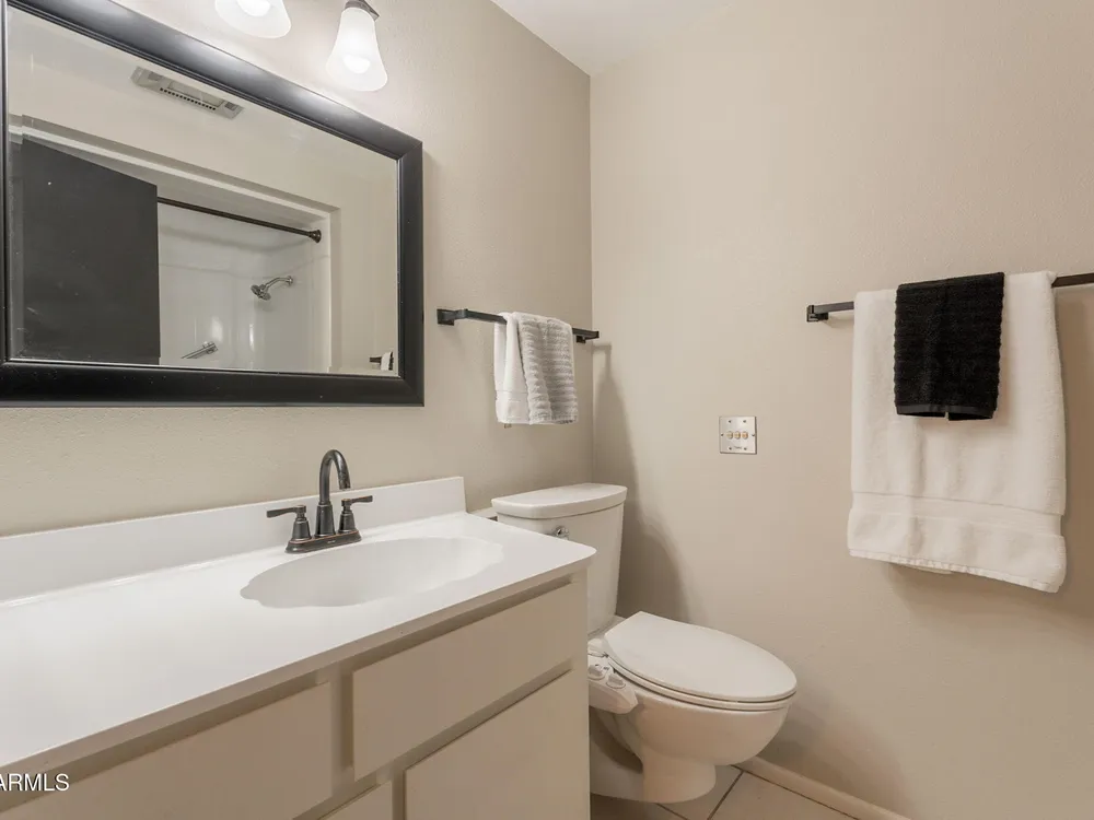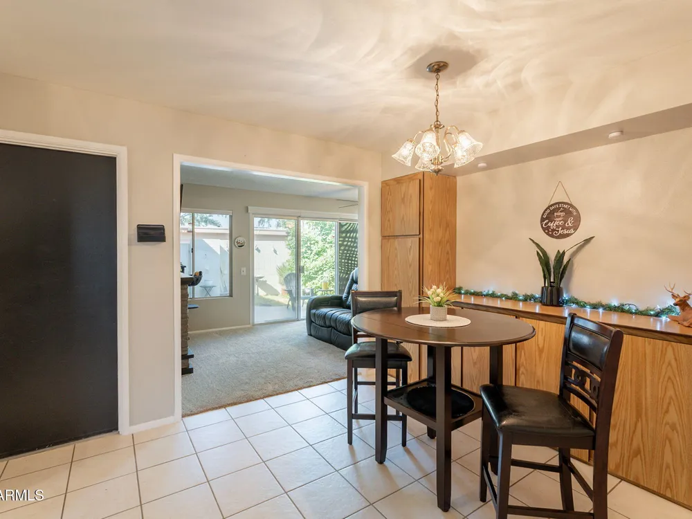 Welcome to this beautifully updated home featuring two bedrooms and two bathrooms. Thoughtful updates throughout make this residence truly move-in ready. The entire interior has been freshly painted in a warm and inviting color palette, complemented by plush new carpeting that adds comfort and style. The kitchen is equipped with brand-new stainless steel appliances, and all cabinets have been refreshed with new paint and modern hardware. Bathrooms feature new toilets and resurfaced showers and tub, offering a clean and updated feel. Enjoy energy efficiency and style with all new interior shutters and window coverings, as well as new exterior sunscreens to help keep the home cool during Arizona's sunny days. The new water heater provides added peace of mind, and both the patio and garage The patio and garage floors have been finished with durable epoxy coating. This home is perfect for those seeking a well-maintained and tastefully updated property in a desirable location.