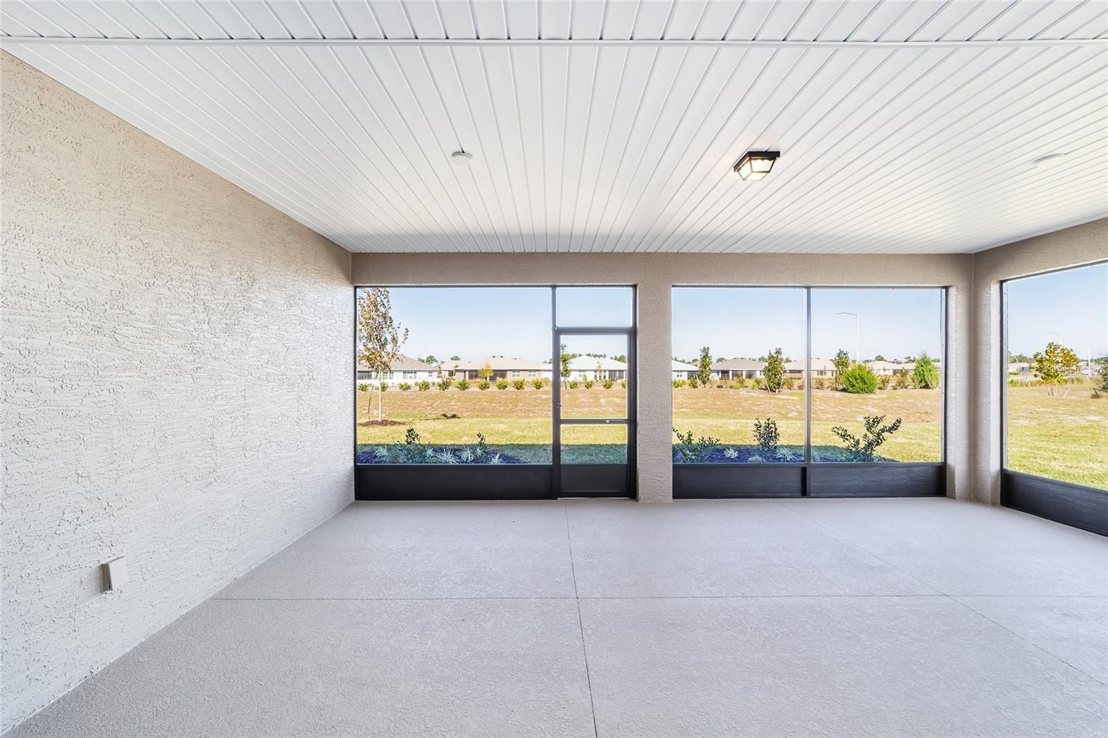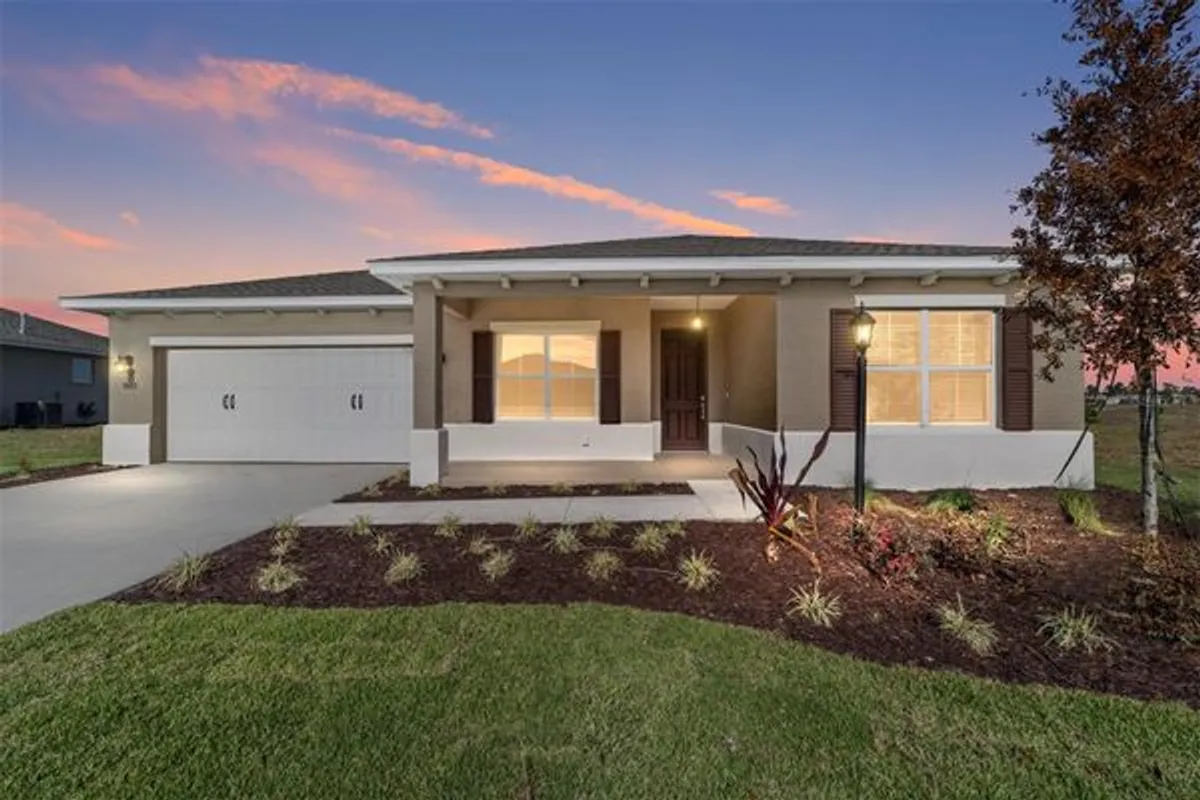 Indulge in elevated new-construction living with the beautifully designed Ariana floor plan, where spacious interiors and refined finishes come together in Ocala’s premier 55+ community, On Top of the World. This impressive residence offers 2 bedrooms, 2 baths, a generous flex room, and a 2-car garage with dedicated golf cart space, encompassing 2,019 sq. ft. of thoughtfully curated living space. The expansive great room is enhanced by elegant laminate flooring and recessed lighting, flowing seamlessly into a designer kitchen featuring an oversized quartz island, crisp white shaker cabinetry, stainless steel appliances, gas range, and a sophisticated tile backsplash—perfectly suited for both everyday enjoyment and upscale entertaining. Retreat to the spa-inspired primary suite showcasing dual quartz vanities, custom mirrors, designer lighting, and a beautifully tiled walk-in shower with glass enclosure. A large enclosed lanai extends the living area outdoors, offering a tranquil, light-filled space ideal for year-round relaxation. Additional highlights include a well-appointed laundry suite, covered front porch, energy-efficient construction, and refined architectural details throughout. Set within an award-winning, amenity-rich community offering golf, wellness programming, lifelong learning, weekly entertainment, over 21 miles of scenic walking trails, and more than 175 resident clubs, this exceptional home delivers a lifestyle of comfort, elegance, and distinction.