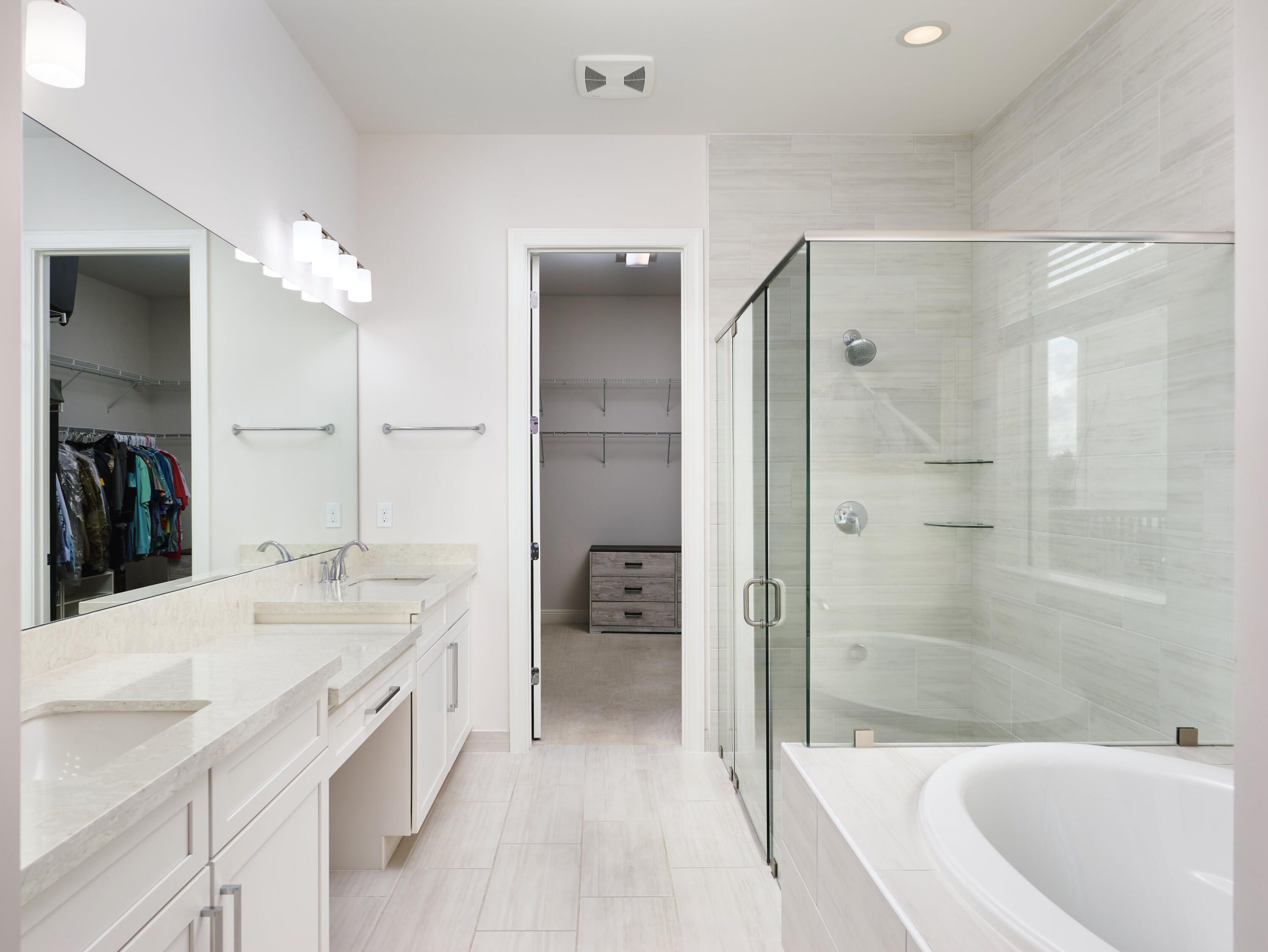 - Entrance Foyer, Pantry, Walk-In Closet(s), Impact Glass, Living/Dining Room, Eat-in Kitchen, Kitchen/Dining Combo, Dual Sinks, Main Level Primary, Separate Shower, Soaking Tub