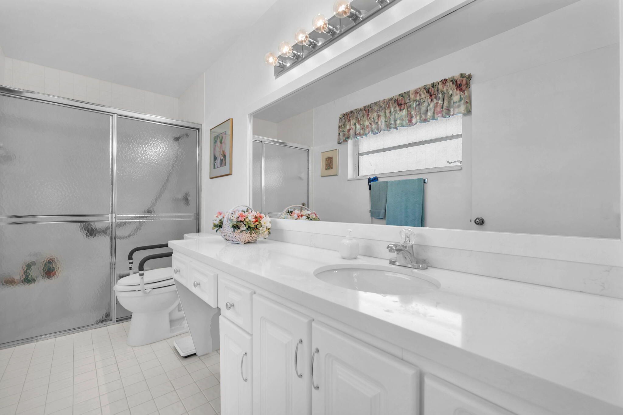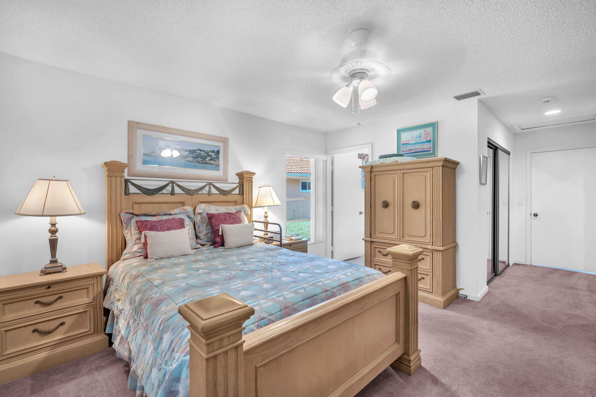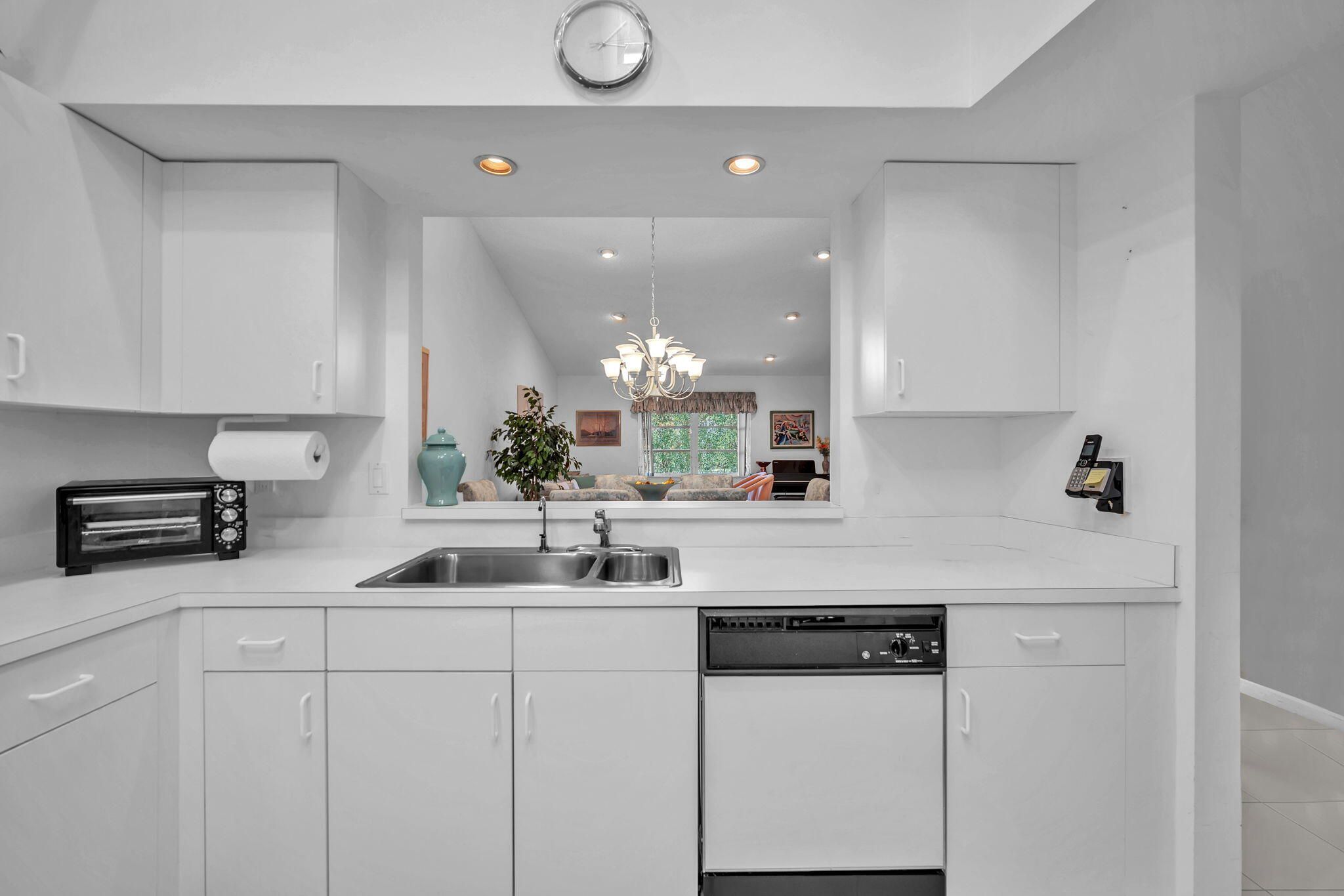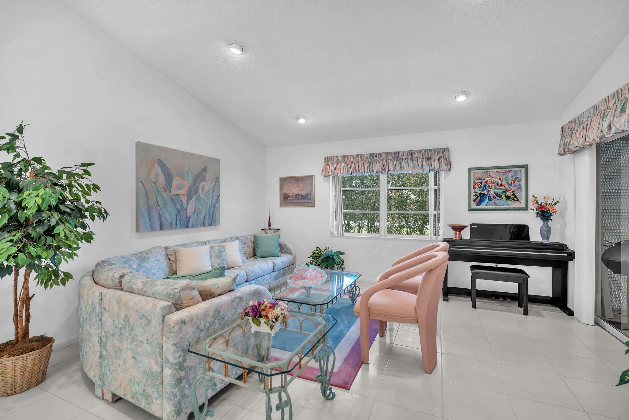 Experience light, space, & serenity in this beautifully maintained 2/2 end unit villa with soaring ceilings & kitchen skylight that fills the home with natural sunshine. This is your chance to create your very own coastal retreat, offering the perfect blend of comfort & potential. Enjoy the convenience of a one-car garage, tile & carpet flooring throughout, an exterior freshly painted & inside washer & dryer. The A/C was replaced in 2023, & the roof (believed 2008) Home is situated close to several community pools. Palm Isles a 55+ man-gated community offering tennis, pickleball, an on-site cafe, a stunning new clubhouse debuting in January & more! Perfectly located near the Turnpike, shopping, dining, & entertainment. Seller to pay half of the assessments for new clubhouse w/strong offer