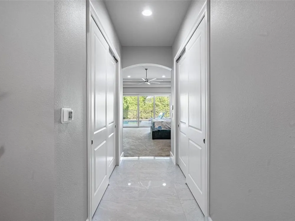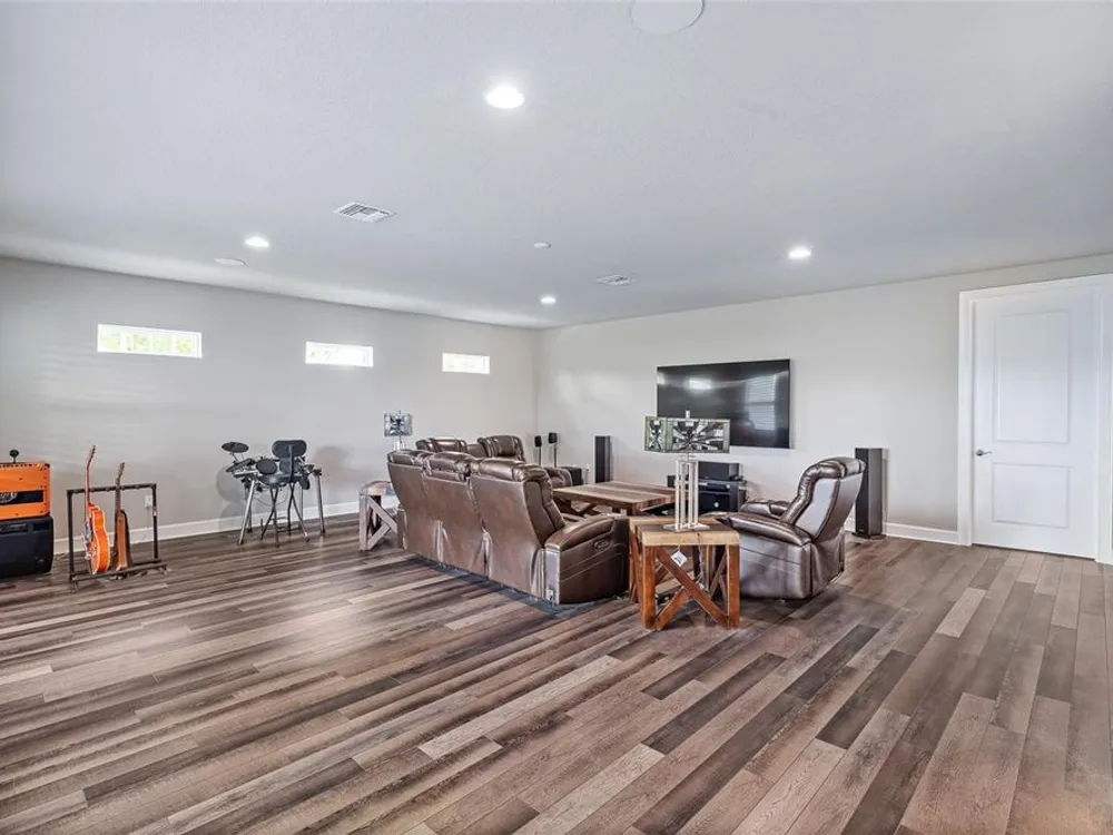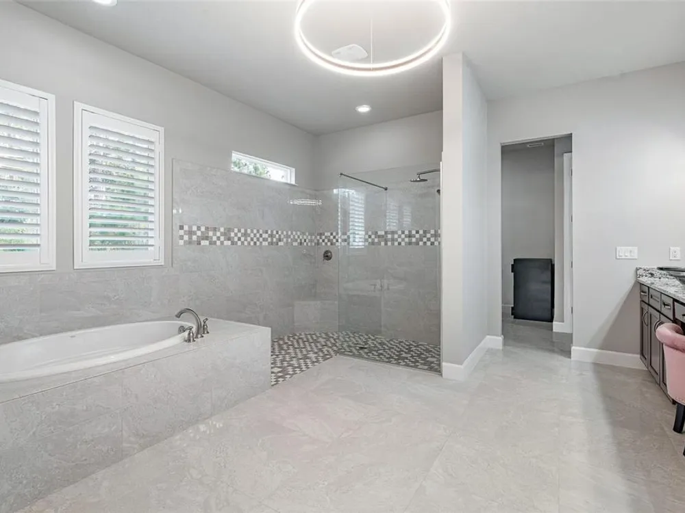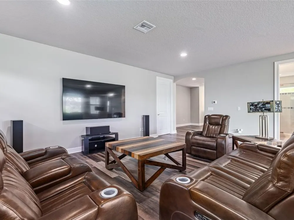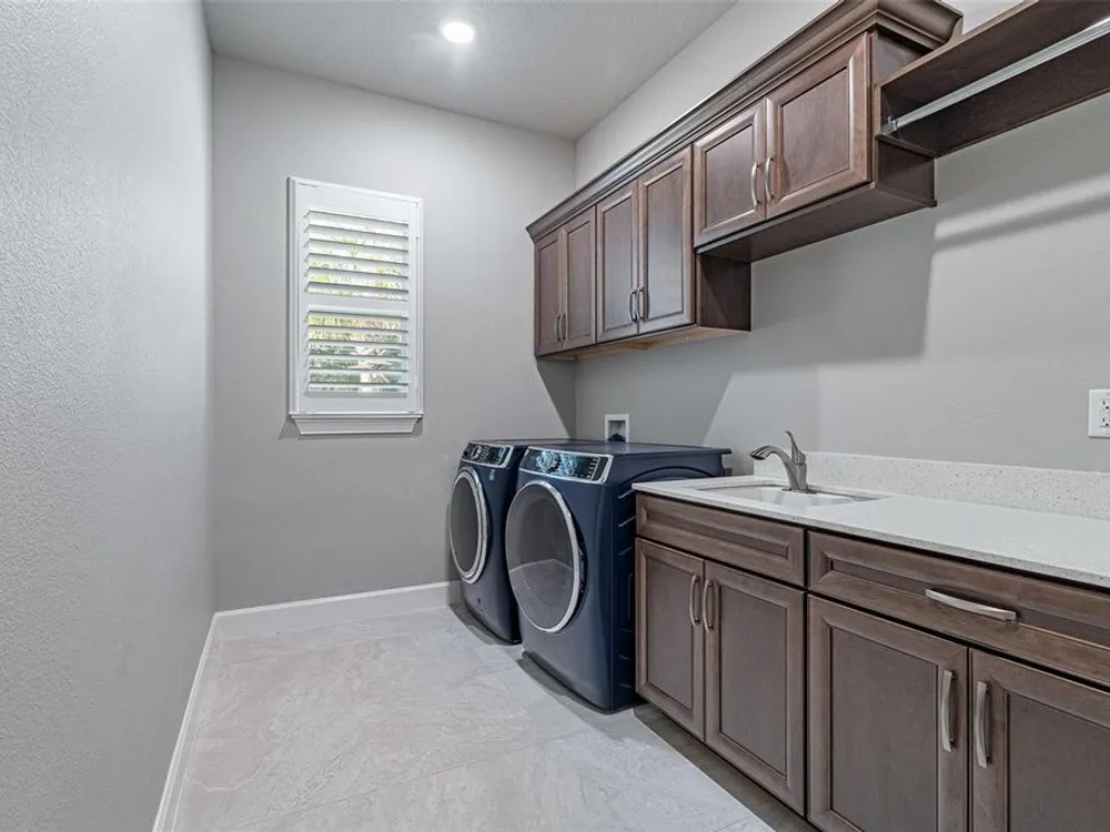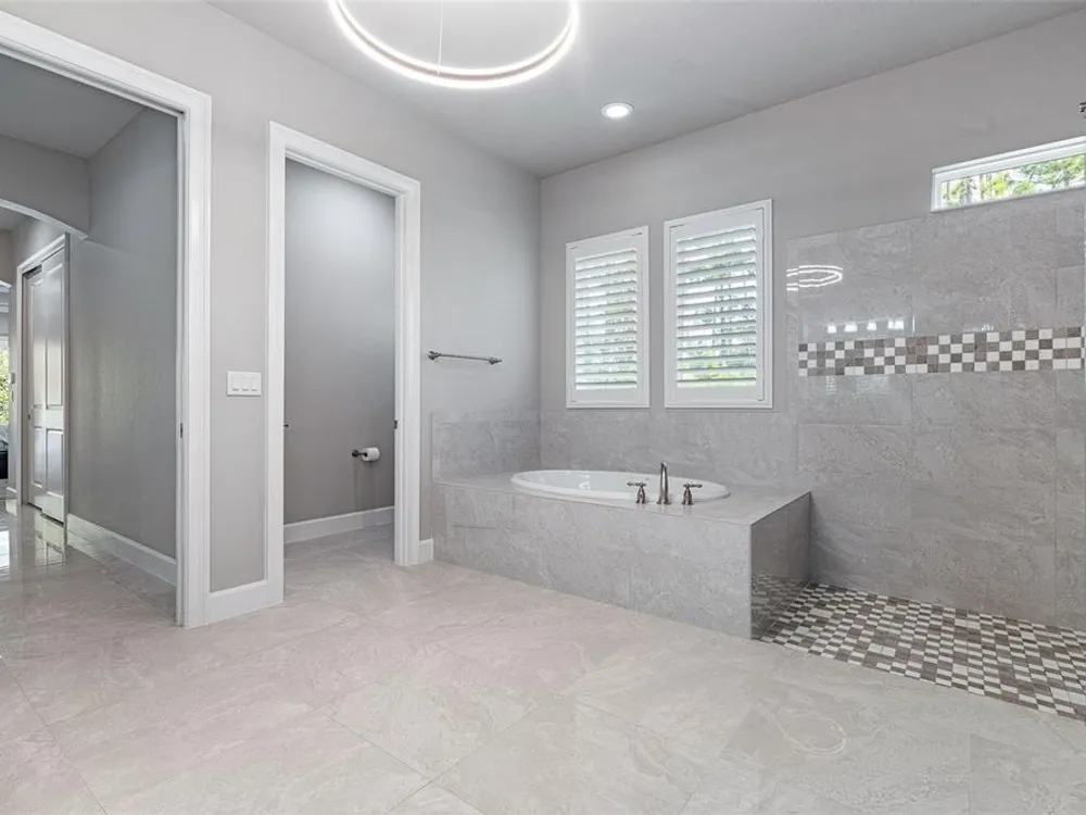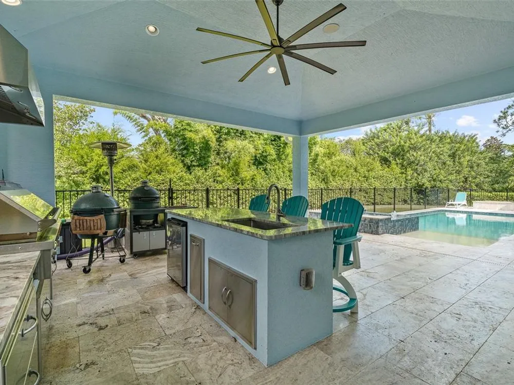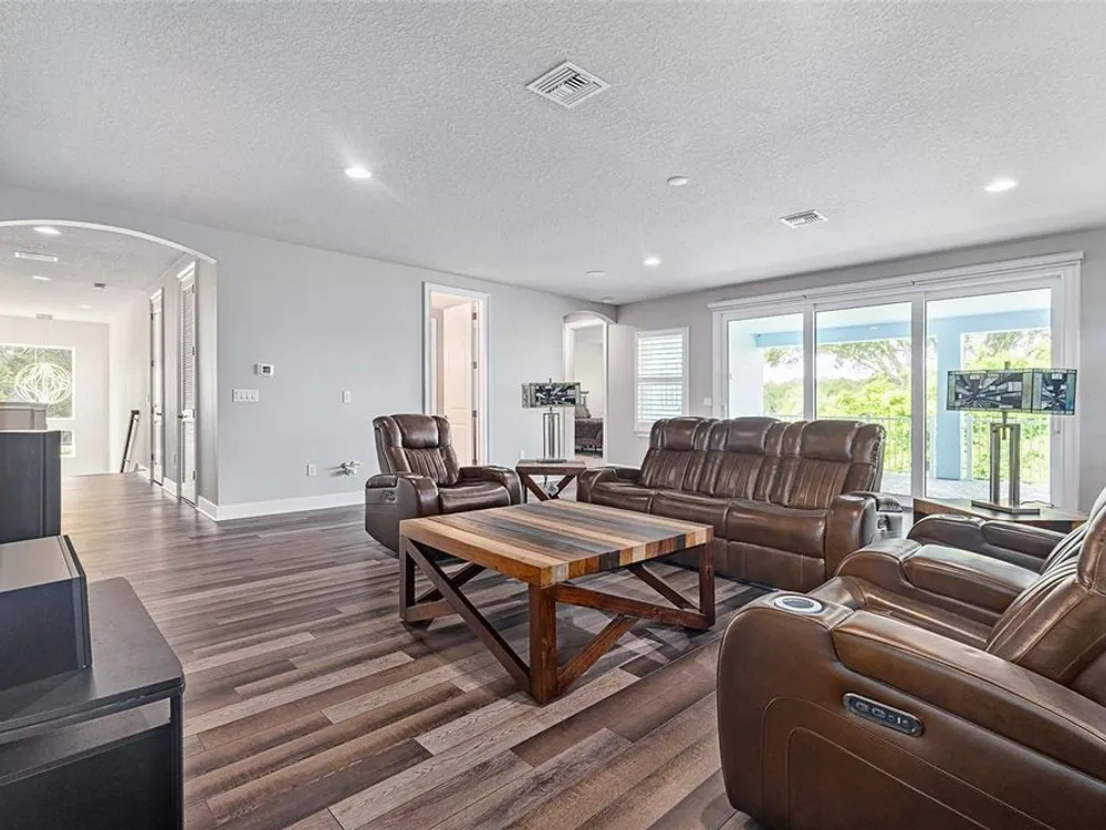 One or more photo(s) has been virtually staged. Stunning estate home offering an expansive 5,454 square feet of luxury living in the Plantation Bay fully SOLAR POWERED. Perfectly situated on a private corner lot of over half an acre, featuring 5 bedrooms, office, loft, bonus room, and 4 full baths, along with a rare 6+ car garage. Enter into a grand foyer adorned with a crystal chandelier & crown molding. The family room boasts soaring coffered ceilings, custom built-ins, and a striking linear gas fireplace set on a full stone wall, with four vanishing sliders that seamlessly open to the lanai with electric blinds. The gourmet kitchen showcases granite countertops, double-stacked cabinetry, GE Profile stainless steel appliances including gas range & convection oven, an oversized drop-edge granite island with charging towers, walk-in pantry, and storage features such as pull-out spice racks & two-tone cabinetry. A breakfast nook with rounded windows overlooks the pool & the formal dining room is appointed with porcelain tile floors, crown molding, tray ceiling, & crystal chandelier. The expansive primary suite offers a private foyer entrance, crown molding, plantation shutters, triple sliders with electric blinds to the lanai, and dual custom walk-in closets. The master bath features dual floating vanities with granite, a soaking tub, walk-in shower, & private commode with electric bidet. A private exercise room/sauna extends the suite's retreat. Bedroom 2,3,& 4 are all on the first floor. Each with custom closets & electric blinds, Bedroom 4 featuring en-suite bath with lanai access. Upstairs, a loft/library space leads to a massive bonus room with theater setup, triple sliders to a private balcony, and full bath connecting to the fifth bedroom with walk-in closet & balcony access. 2nd story balcony features pavers and expansive bird's eye views of the pool and yard. The outdoor living space is an entertainer's paradise, with extended pool & elevated spa with LED lighting, travertine decking, & remote-control systems. A full cabana kitchen includes a grill, sink, cabinetry, beverage fridges, fire pit, all overlooking the private backyard with lush landscaping for ultimate privacy. Fully fenced in yard, anchored on a corner lot with privacy hedges surrounding the home. This home has full house solar creating the ultimate energy efficiency and excellent cost of living. Additional highlights include 10'-14' ceilings, custom closet systems throughout, Control4 home automation with integrated lighting/audio/security, propane tank on remote for range/grill/heater on jacuzzi/fireplace/firepit, tile roof, gutters system, whole house generator, whole house water filtration system, extensive camera system, custom light fixtures throughout, expansive built-ins, excellent storage with 2 large storage closets, and pavers driveway surrounded by manicured privacy hedges, plus more. All located in GATED, golf cart friendly community of Plantation Bay with optional memberships available. Membership to include 45 hole of private golf, 9 tennis courts, 10 pickleball courts, new 30 million dollar Founders Clubhouse, additional Prestwick Clubhouse, fitness/spa center, 2 pools with cabana bar & grill, full events calendar, plus more! Buyers of this home to receive substantial discount on initiation fee at the club. Ask listing agent for details. This remarkable residence embodies the true essence of estate living-grand in scale, rich in detail, and designed for both family comfort and entertainment.