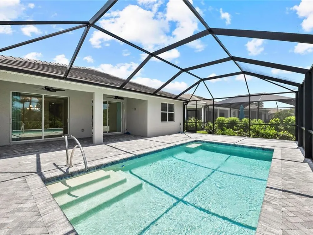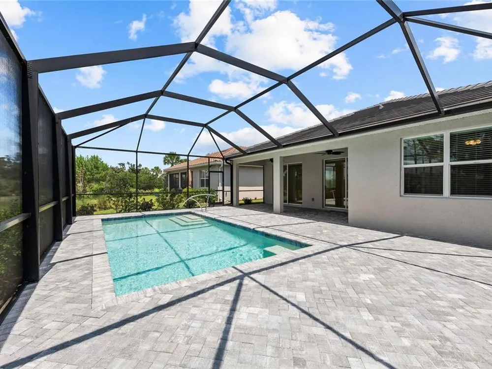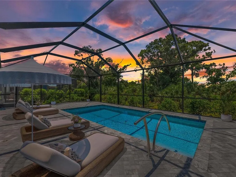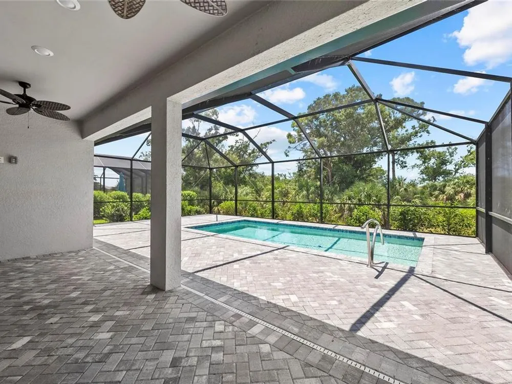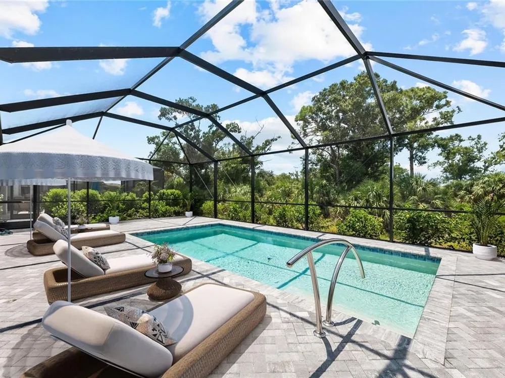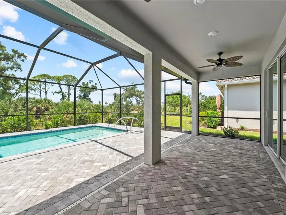 One or more photo(s) has been virtually staged. MOTIVATED SELLERS- JUST REDUCED $50K!!!! Newer home—skip the builder costs. Full of upgrades, this 2023 home is located in the resort-style community of Beachwalk by Manasota Key. Situated on a premium private preserve lot, this home boasts lush, upgraded landscaping and a beautifully designed heated saltwater pool—your own backyard oasis. Inside, you’ll find elevated 8’ doors and higher baseboards, porcelain tile laid on the diagonal throughout the main living areas, and upgraded carpeting in the bedrooms. The decorative glass front door, paver driveway, and tray ceilings in both the living room and primary suite add to the home’s custom feel. Extensive LED can lighting and designer fixtures elevate the overall ambiance. The den features elegant glass French doors with shades and a built-in closet, offering the flexibility to serve as a fourth bedroom if desired. The kitchen is a showstopper with upgraded soft-close cabinets featuring dovetail construction, quartz countertops, a large center island with a composite sink, and premium stainless steel appliances including a gas cooktop. A large walk-in pantry and double sliding glass doors open to the lanai, seamlessly blending indoor and outdoor living. The primary suite overlooks the private pool and includes a custom walk-in closet, tray ceiling, and a luxurious ensuite with quartz countertops, dual sinks, a frameless glass shower door, and designer tile with a custom inlay. The secondary bedroom includes its own private ensuite, perfect for guests, while the third bedroom is positioned at the front of the home with charming bay windows and close proximity to a third full bathroom. All guest bathrooms have been upgraded with premium cabinetry, quartz counters, and tile work. The oversized laundry room includes an upgraded washer and dryer, custom built-ins, and is pre-plumbed for a sink. One standout feature is the oversized garage with a 4-foot extension and sleek epoxy floors, offering ample room for storage, a workspace, or larger vehicles—ideal for the hobbyist or anyone in need of extra space. The outdoor living area is equally impressive, featuring an extra-large covered lanai that provides plenty of room to relax or entertain while enjoying the tranquil view of the heated saltwater pool and preserve beyond. Beachwalk by Manasota Key offers an unrivaled resort lifestyle. Residents enjoy access to the Capri Clubhouse, which features a state-of-the-art fitness center, two movement studios, card rooms, a social lounge, and a café. The tropical saltwater pool includes lap lanes and a heated spa, and multiple onsite dining options include a restaurant, bar and grill, and a poolside tiki bar. Sports enthusiasts will appreciate ten pickleball courts, five tennis courts, and six bocce ball courts. Outdoor amenities also include a lakeside boardwalk with a pier and gazebo, fire pits, a dog park, and a community garden. Walking trails, both paved and unpaved, extend throughout the community and into the nearby Lemon Bay Park & Environmental Center.