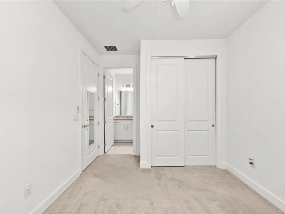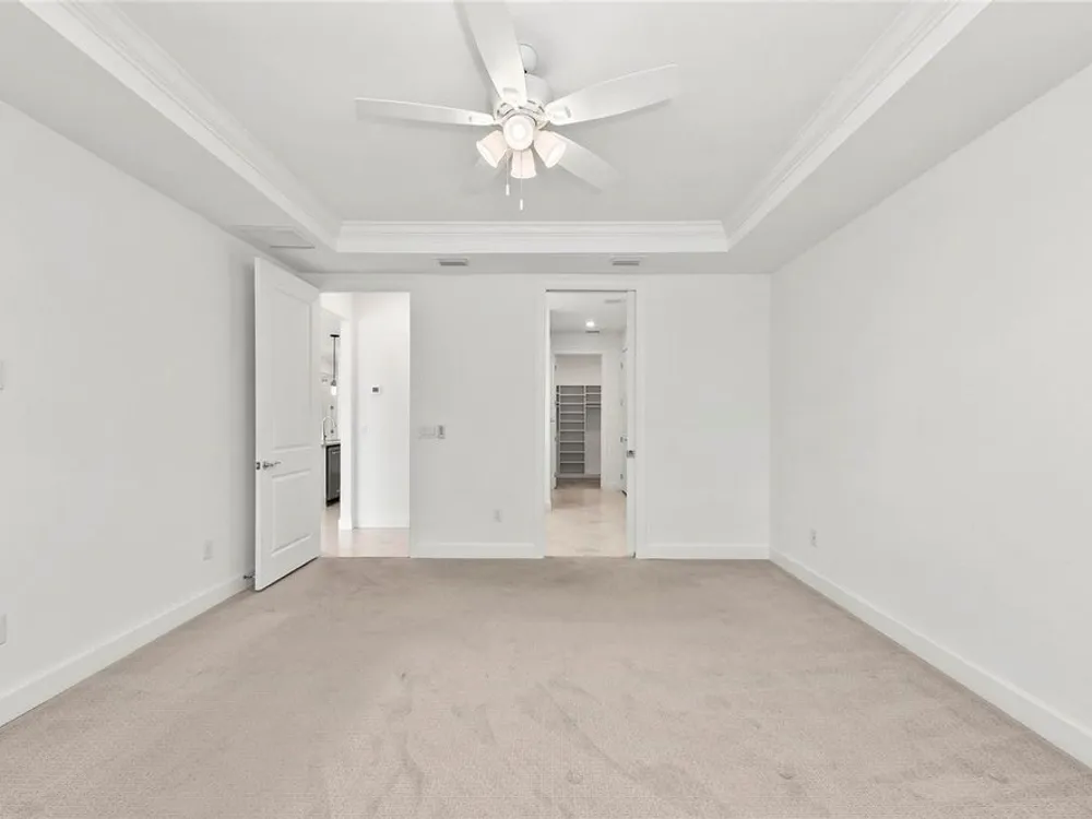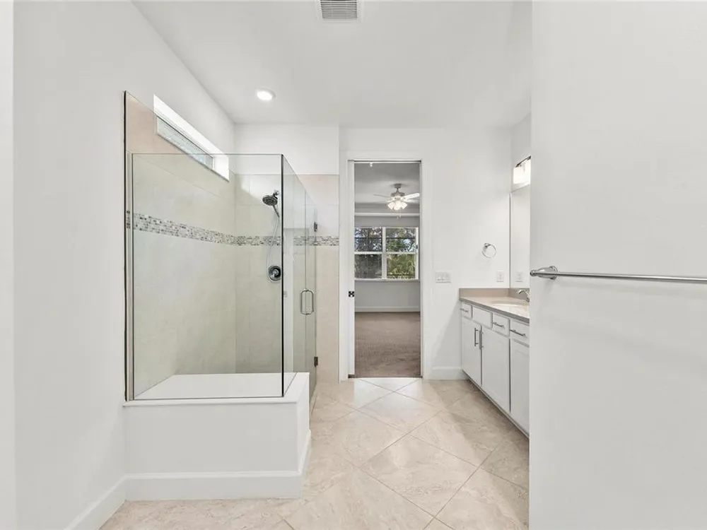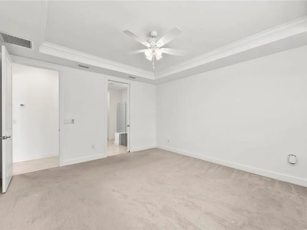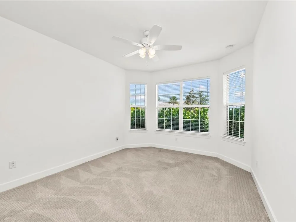 - Ceiling Fan(s), Eat-in Kitchen, High Ceilings, Open Floorplan, Main Level Primary, Split Bedrooms, Stone Counters, Thermostat, Walk-In Closet(s), Window Treatments