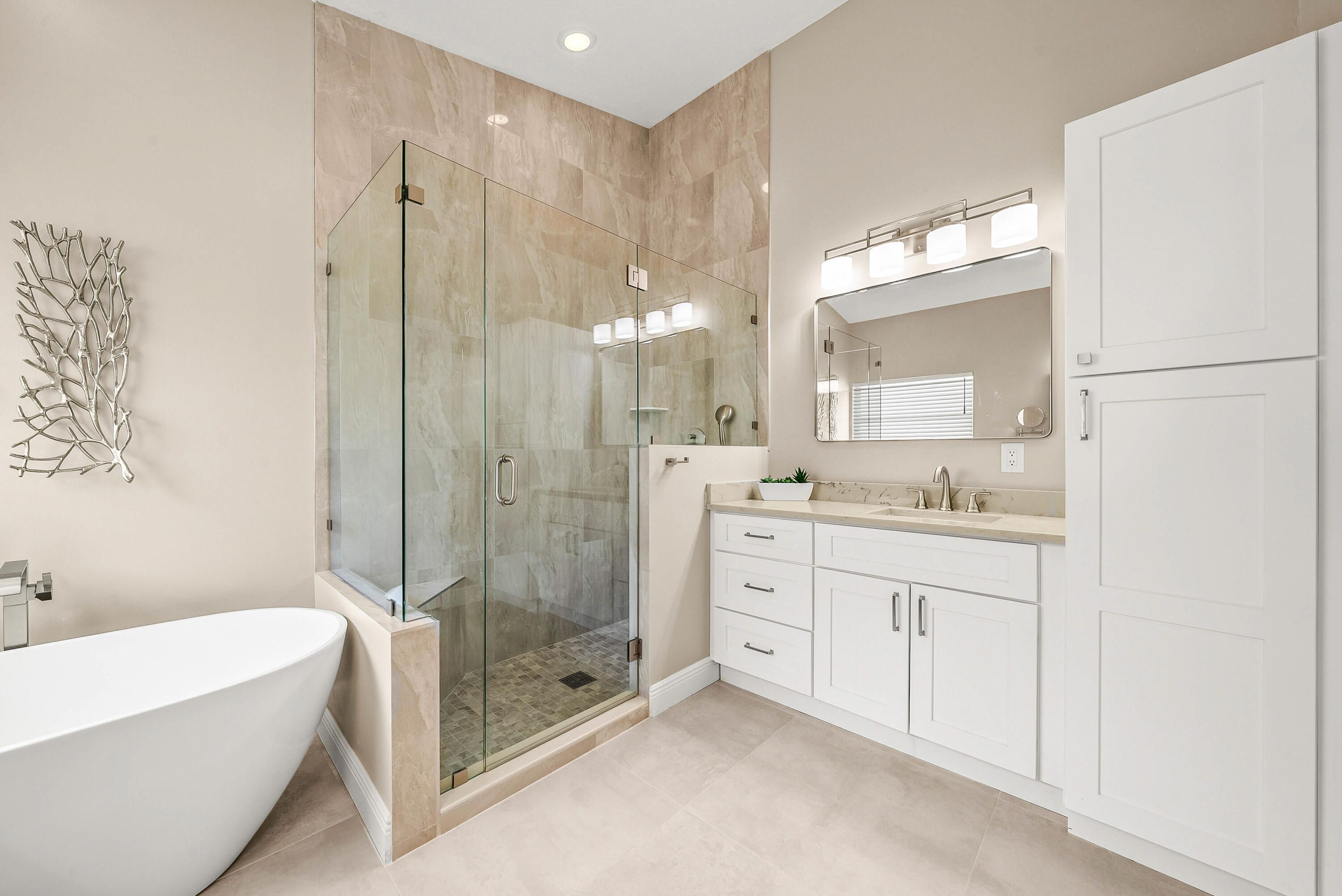 Welcome to this beautifully maintained home in the highly sought after Bellaggio where comfort meets modern elegance.This well kept residence features a bright, open concept layout designed for both everyday living and effortless entertaining. The spacious living and dining areas flow seamlessly into a stunning, recently updated modern kitchen, complete with sleek cabinetry, ample counter space, and contemporary finishes perfect for hosting family and friends. Unwind in the luxurious primary suite, highlighted by a spa-like bathroom with a relaxing soaking tub your own private retreat after a long day. Step outside to enjoy a peaceful setting with plenty of space to entertain or simply relax and take in the beautiful surroundings. With no homes behind it, this property is perfect if you value privacy and a garden; this is one you must see! Located in a vibrant, resort-style community, residents of Bellaggio enjoy world-class amenities, including a clubhouse, fitness center, tennis courts, pickleball, bocce, and a full social calendar. Don't miss the opportunity to own this move-in-ready gem in one of the area's premier active adult communities!