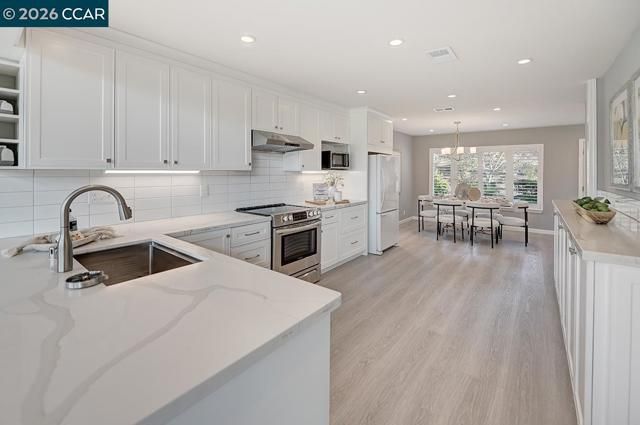 Rare single-story, level-in with no one above or below Sierra model framed by lush landscape and expansive vista views of golf course and hills beyond. The level-out patio delivers the ultimate California lifestyle, seamlessly blending indoor–outdoor living with an open concept floor plan. Enjoy the simple convenience of a central location that supports a healthy, walkable lifestyle; just a short stroll to many of Rossmoor’s award-winning amenities. Seldom does a home come along that has been so beautifully remodeled and thoughtfully reconfigured, showcasing distinctive architectural design and only the finest finishes throughout. The garage and carport are conveniently located at the front entry. Truly a wonderful place to call home.
