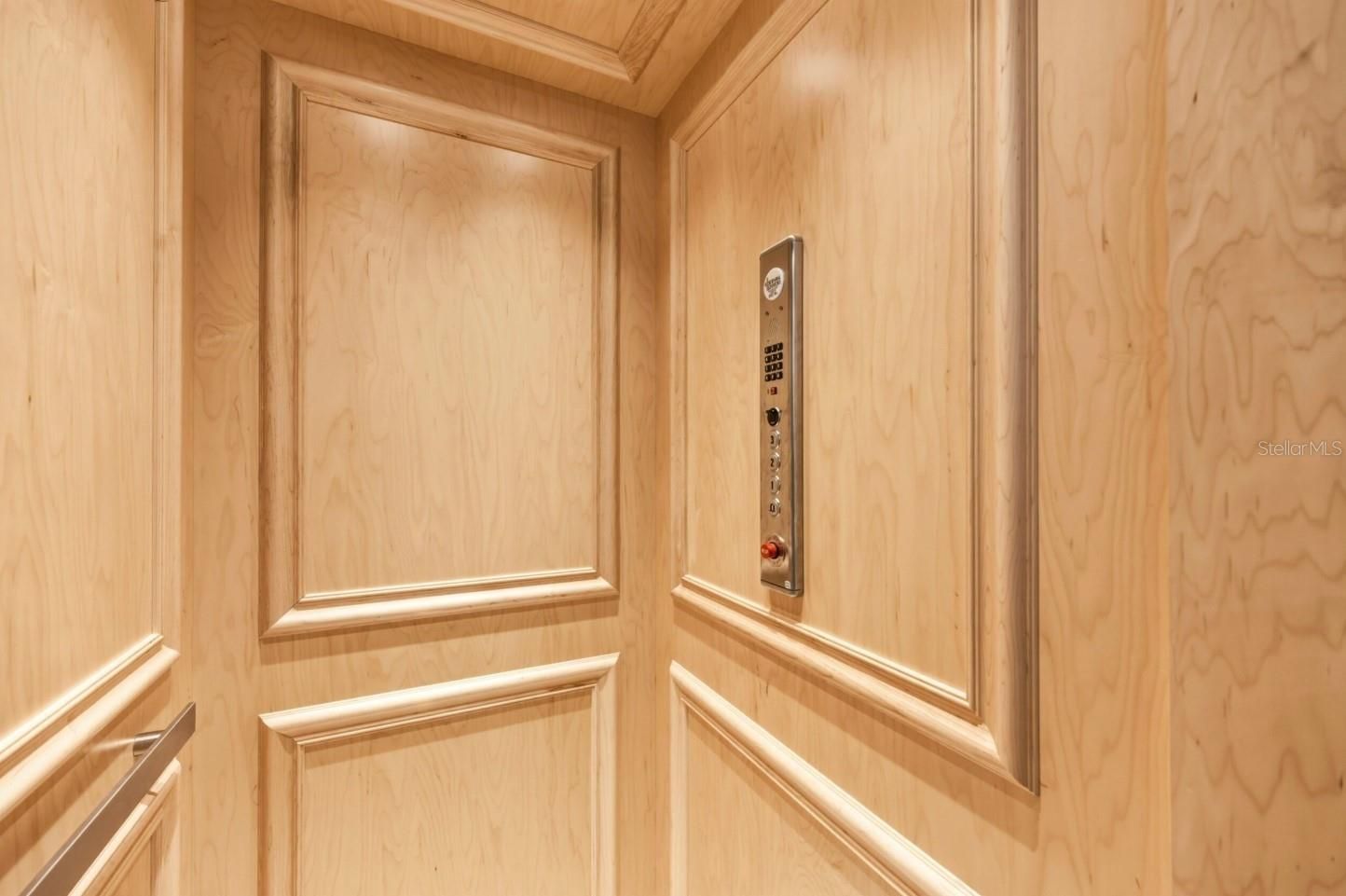 - Built-in Features, Eat-in Kitchen, Elevator, High Ceilings, In-Wall Pest Control, Upper Level Primary, Solid-Wood Cabinets, Thermostat, Walk-In Closet(s)