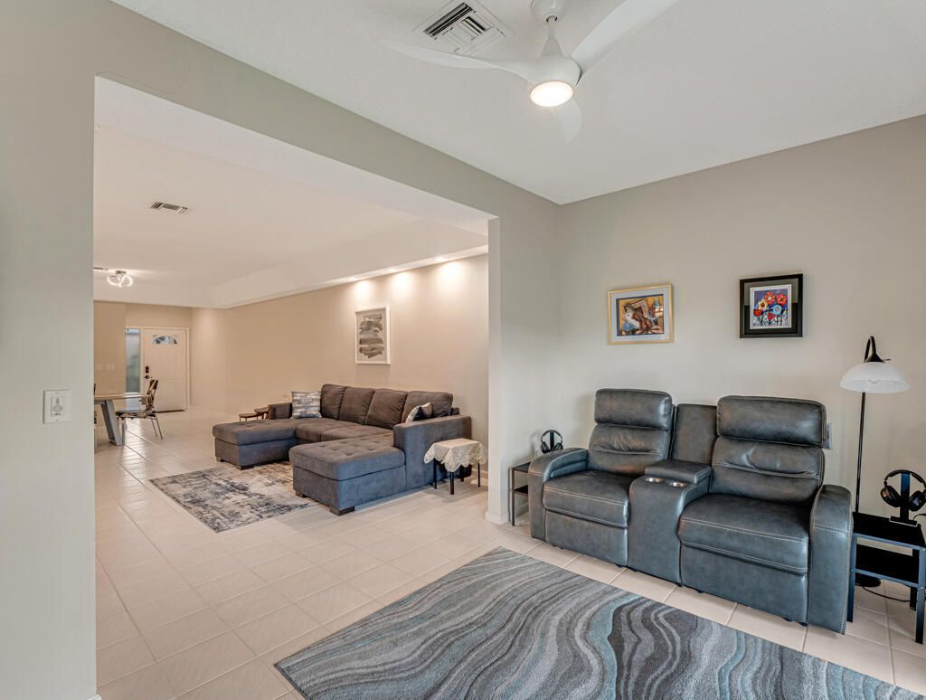 Beautifully maintained villa in the highly sought-after 55+ community of Palm Isles in Boynton Beach. This bright, spacious home features ceramic tile throughout, high-hat LED lighting, and natural light. The updated kitchen includes sleek stainless steel GE appliances. Accordion hurricane shutters provide peace of mind, while a Google Home smart lock and thermostat add modern utility. Enjoy the convenience of an inside laundry room with tub and a 1-car garage. Palm Isles offers a vibrant lifestyle with lots of events, clubs & activities. The communities amenities include 4 pools, 1 indoor pool, tennis, pickleball, as well as an on-site cafe — all just minutes from shopping, dining, and more! Multi-million Dollar Renovated Clubhouse reopens very soon! Get in now and get ahead! *Google Home locks and thermostat remain with property - control your home from anywhere online! * Updated Kitchen with 2021 GE Stainless Steel Appliances *Ceramic tile throughout - built-ins have tile underneath *Electric Panel has built in surge protector *New toilets in each bathroom * AC replaced in 2019 *Water Heater replaced in 2018 * Some furniture changed since photos were taken