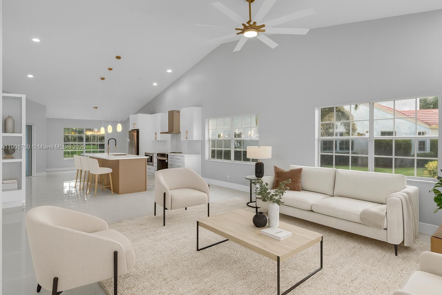 Stunning fully remodeled villa in Emerald Pointe! Located on an oversized pie-shaped lot in a quiet cul-de-sac with breathtaking lake & fountain views. This elegant 2-bed, 2-bath home features 1,735 sqft under A/C including an enclosed Florida room. Enjoy a designer kitchen & bathrooms, gorgeous porcelain floors, smooth ceilings, new lighting & patio, SS appliances, new roof (2023), A/C (2020), water heater (2020) & whole-house generator. Spacious laundry under A/C & 1-car garage. 55+ community w/ tennis, pickleball, pool, gym & clubhouse. HOA covers roof, exterior insurance, cable, internet, water, lawn, paint, reserves, security & alarm.