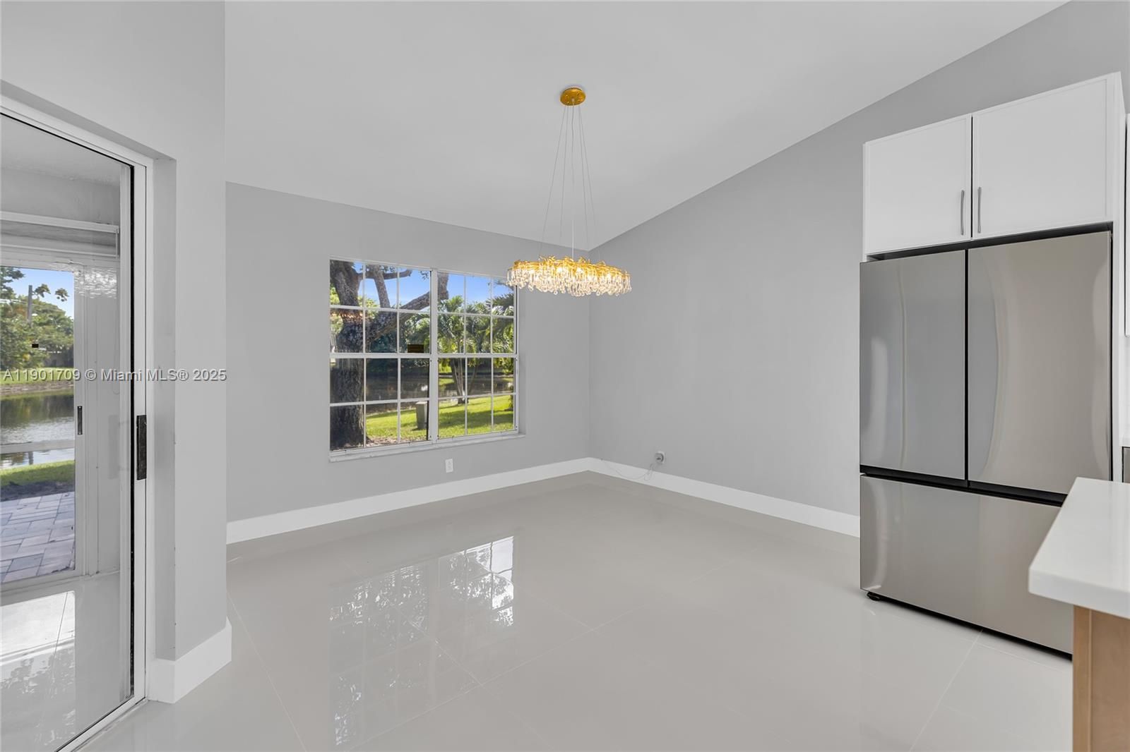 - Bedroom on Main Level, Breakfast Area, Eat-in Kitchen, First Floor Entry, Living/Dining Room, Main Level Primary, Split Bedrooms, Vaulted Ceiling(s), Walk-In Closet(s)