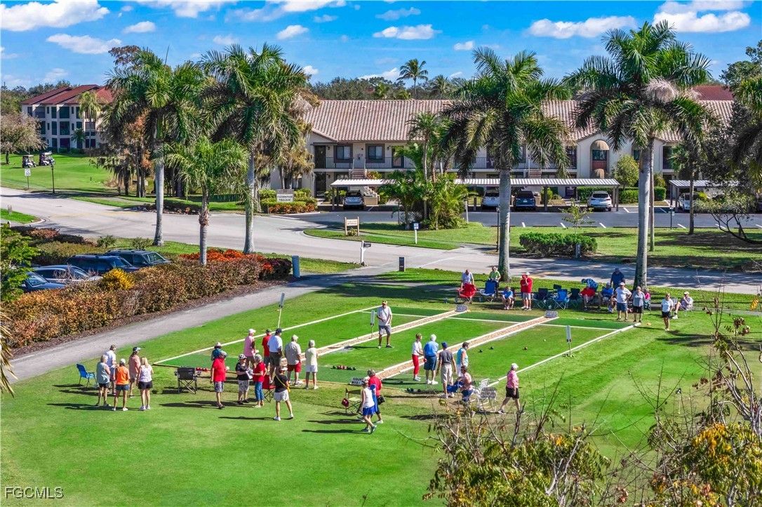 AMAZING LOCATION! Live your carefree Florida lifestyle at a fraction of the cost in this cozy condo that has been loved and well kept. This 2-bedroom, 2-bath condo lives far larger than its square footage, thanks to a thoughtfully designed and open split floor plan that offers wonderful privacy, with each bedroom featuring its own bathroom. Warm, inviting colors throughout create a comfortable, welcoming retreat you’ll love coming home to. Enjoy creating meals for you or your guests in the generous kitchen featuring stone counters, beautiful wooden cabinetry, a large refrigerator/freezer, and a breakfast bar. A few of the extra bells and whistles include: Tile flooring, walk in closet, electric shutters, washer and dryer, and lots of storage! Just pack a bag and move right in... This is a very active community with a plethora of year round social events and activities. Take a walk in this gorgeous community each day and enjoy the beautiful greenery and smiling faces. Sold fully furnished, this home offers a truly turnkey opportunity. This vibrant Golf community features bocce courts, a pool, pickleball, walking paths, a clubhouse, and on-site restaurant, all while being smack in the middle of everything—shopping, dining, and hospitals are just minutes away, or take a short drive to the beach for the day, have a swim, a cold drink, and take in a sunset to round off the perfect Florida day! Positioned on the #2 fairway of a scenic 18-hole golf course, this condo invites you to sip your morning delight while listening to songbirds and taking in the peaceful views of lush green fairways on your own private and screen in lanai- a daily reminder that life here is meant to be enjoyed at a slower, sweeter pace. Covered parking adds everyday convenience. A wonderful opportunity in an unbeatable location, blending comfort, convenience, and the beauty of golf course living within a vibrant and active social community.