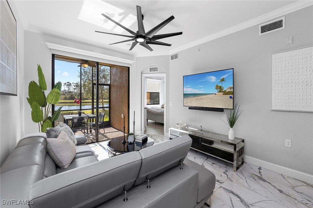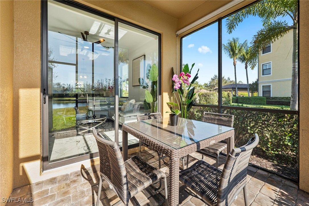 Own a full TPC golf membership with access to Treviso Bay’s renowned 18-hole Arthur Hills–designed championship golf course in this first-floor end unit condominium, in one of Naples desirable golf communities. This sought-after two-bedroom plus den, two-bath residence is in the Acqua subdivision of Treviso Bay and offers effortless, stair-free living with an open, light-filled layout. Recent updates include new flooring in the bedrooms and updated baths featuring elegant marble finishes. Th open-concept kitchen flows seamlessly into the living and dining areas and is highlighted by a clean white backsplash, stainless steel appliances, and ample cabinetry, while marble flooring enhances the main living spaces. The flexible den is ideal for a home office or guest space. Enjoy peaceful lake and preserve views from the private screened lanai, ideal for relaxing mornings or evenings. Treviso Bay offers a resort-style lifestyle with the Villa Rilassare clubhouse, fitness center with classes, full-service spa and salon, resort-style pool with waterfall and tiki bar, tennis, pickleball, bocce, basketball, on-site dining and more, all within a 24-hour guard-gated community conveniently minutes from downtown Naples, Fifth Avenue South, shopping, dining and world-famous beaches.
