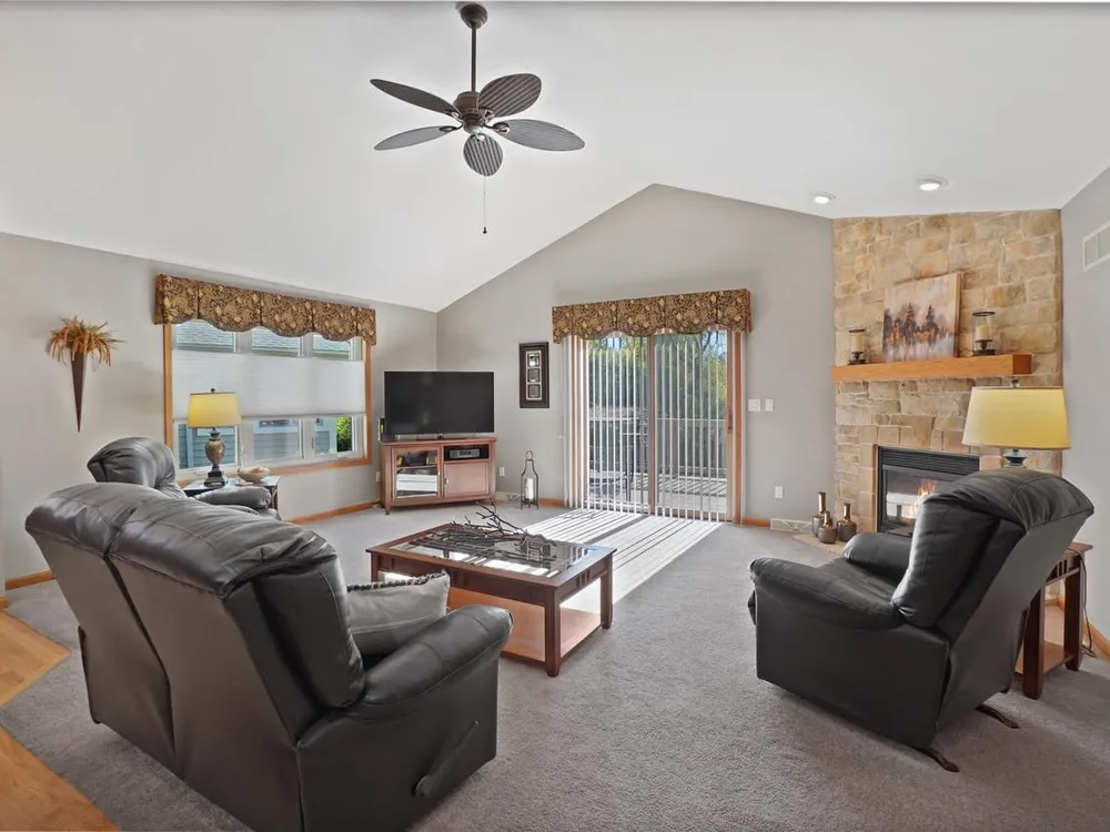 Remarkable 3BR/3BA ranch condo in Pewaukee's Stillwater! Enjoy this exceptional location bordering nature conservancy. Spacious unit offers an open concept floor plan and a finished walkout lower level. Main level features vaulted kitchen-great room. Great room includes gas fireplace and patio doors to composite deck. Kitchen has quartz/granite countertops, hardwood floors, adjoining dining area, and SS appliances included. Master suite features walk-in closet and private bath. Additional bedroom, full bath, and laundry on main level. Huge finished lower level includes a family room with walkout to patio, 3rd bedroom, full bath, and plenty of extra storage space. 2.5-car attached garage with epoxy floor. Unit features new roof, exterior paint, and sealed drive. Excellent location!