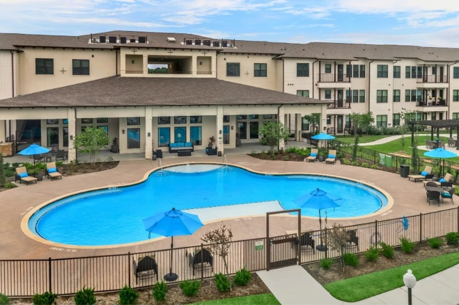 Ivy Point Klein was constructed in 2020, and it comprises 132 apartment homes in this active adult community. Homes range from 718 to 1,368 square feet and offer one or two bedrooms, along with one or two bathrooms. Detached garages and covered parking spots are available. Features in all apartment homes include open floor plans, high ceilings with ceiling fans, faux wood blinds, walk-in closets, washers and dryers, and a pantry in the kitchen. Additionally, each rental home includes outdoor space. First-floor apartments feature a fenced patio, while upstairs homes have a balcony. Some apartment homes also include faux wood flooring and a den.Â