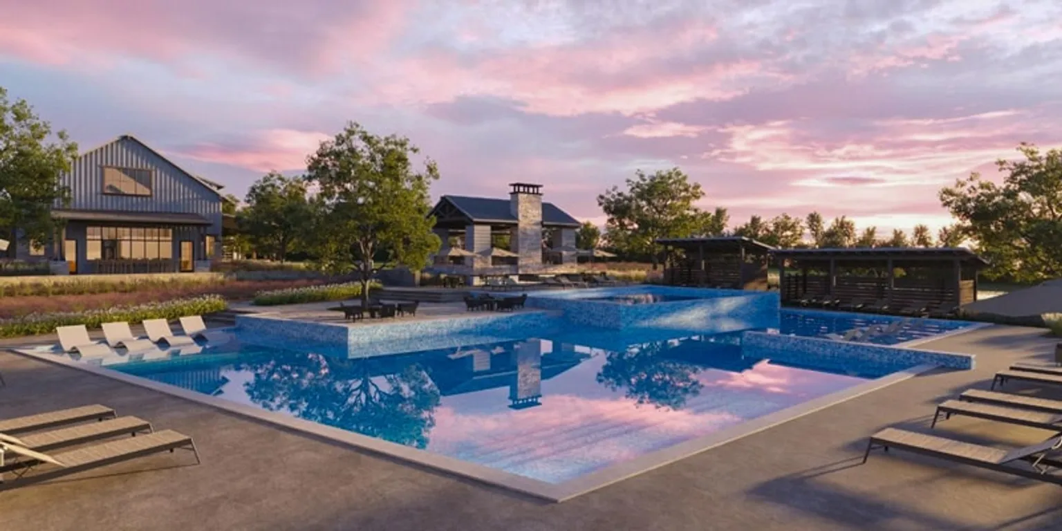 Residents at Regency at Santa Rita Ranch have access to a private community clubhouse with gathering space, an amphitheater, an outdoor pool with seating and deck space, and cabanas.