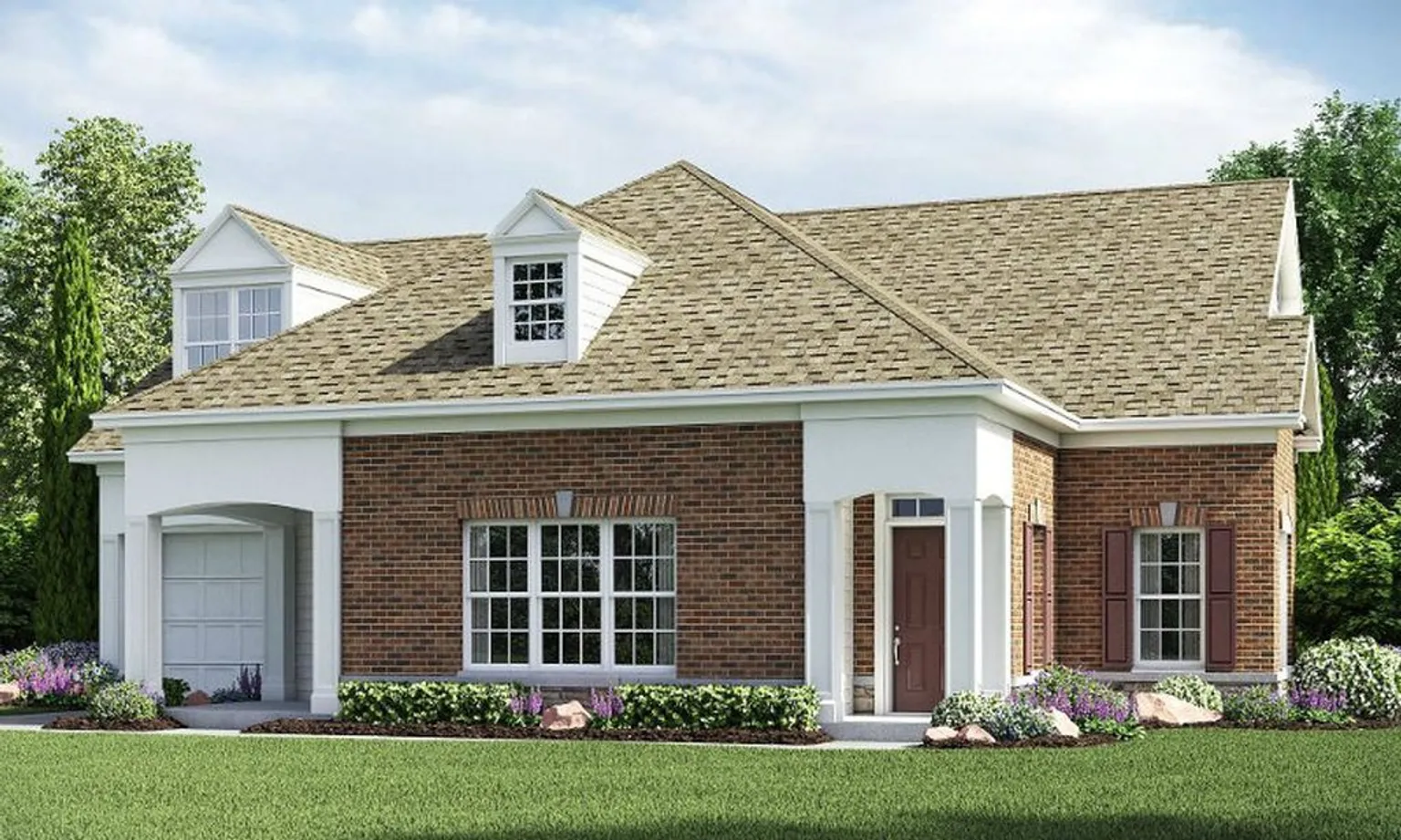 Two models are available. The Ashcroft offers 2,105 square feet, two bedrooms, two-and-a-half bathrooms, and an attached one-car garage. The Saxony model has 2,120 square feet, two bedrooms, two-and-a-half bathrooms, and an attached two-car garage.